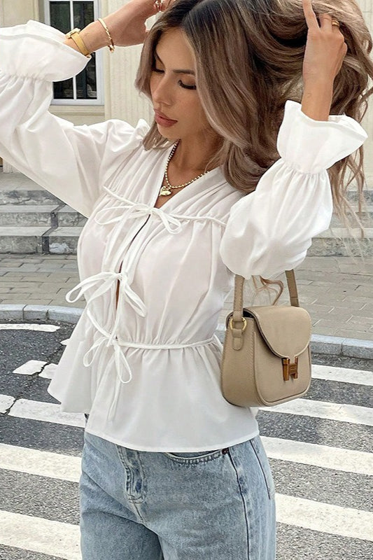 Elegant Cotton Tie Blouse