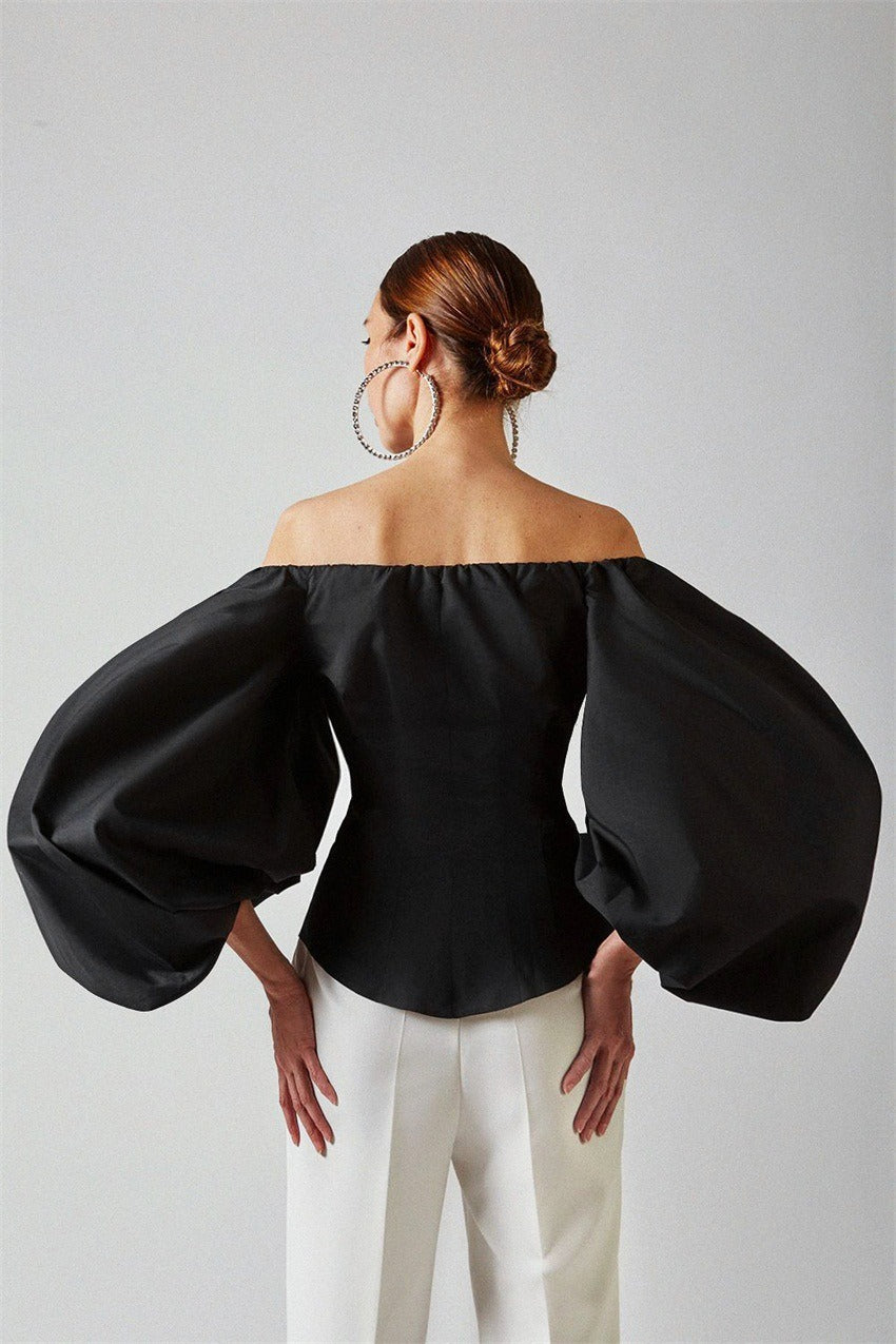 Elegant Puff Sleeve Cold Shoulder Blouse
