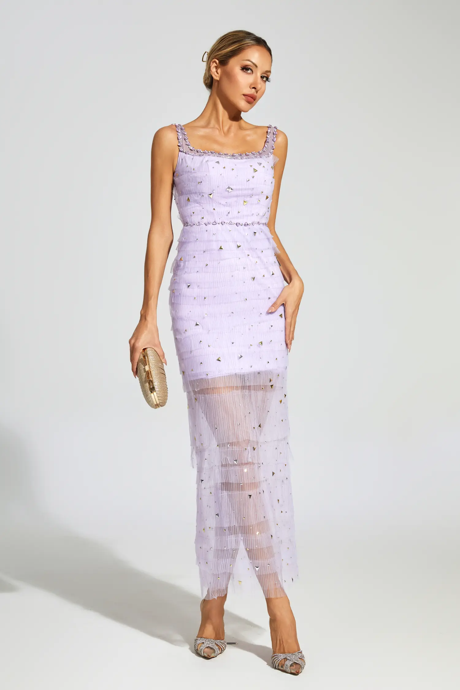Esther Pearl Embellished Off Shoulder Maxi Dress