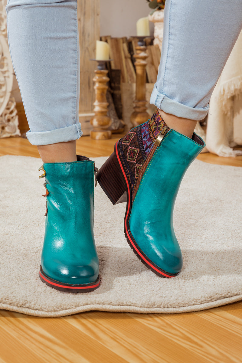 Kaya Linen Blend Color Block Print Front Cutout Knot Puff Sleeve Maxi Dress