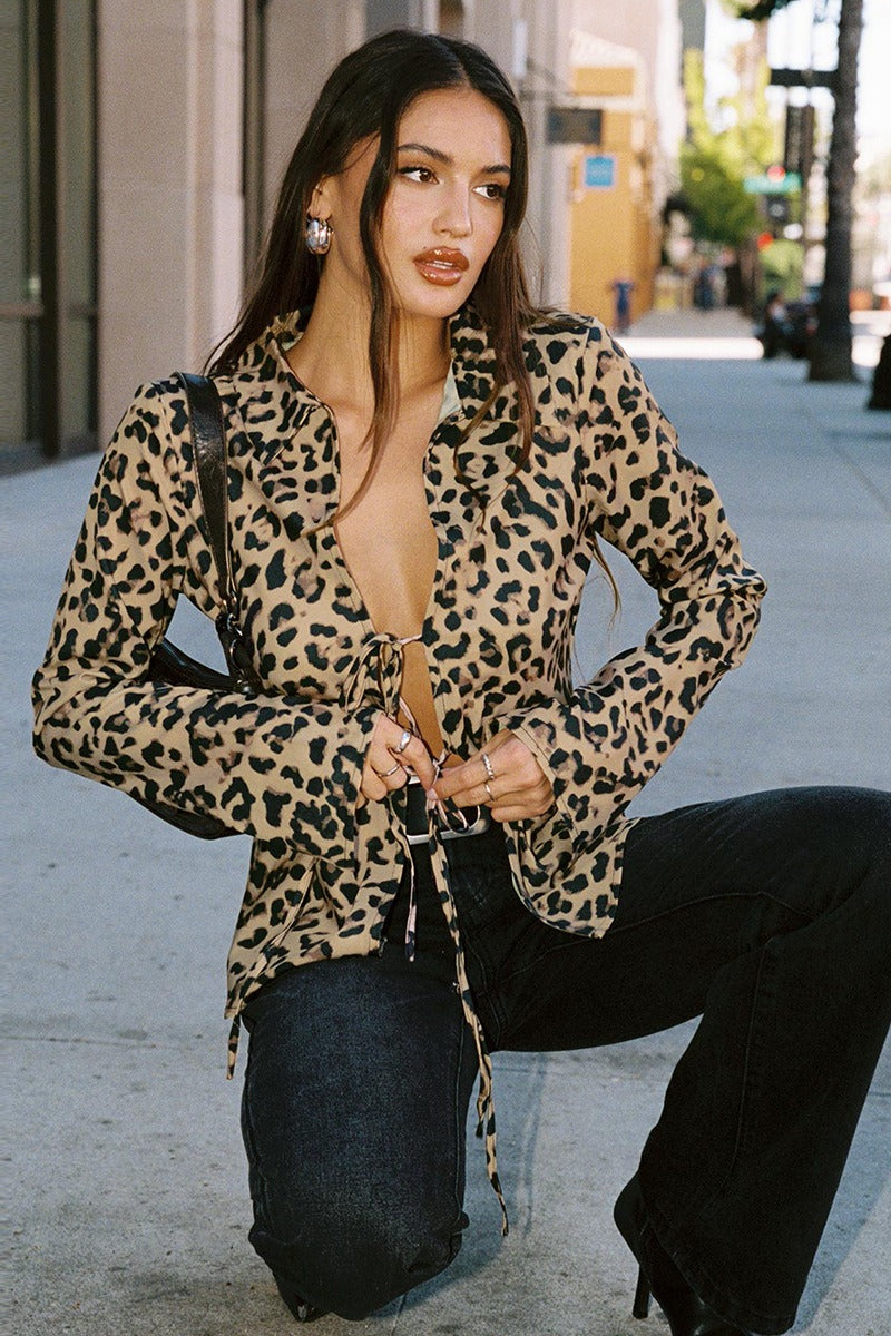 Leopard Print Shoulder Pad Blouse