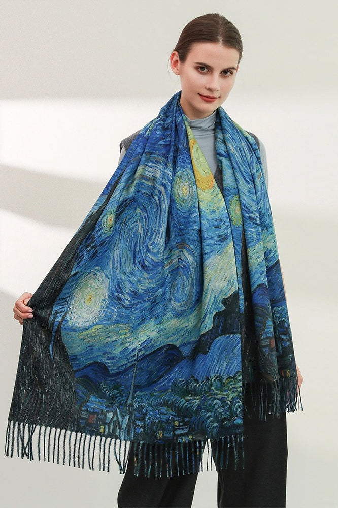 Vintage Van Gogh Print Fringe Wrap Scarf