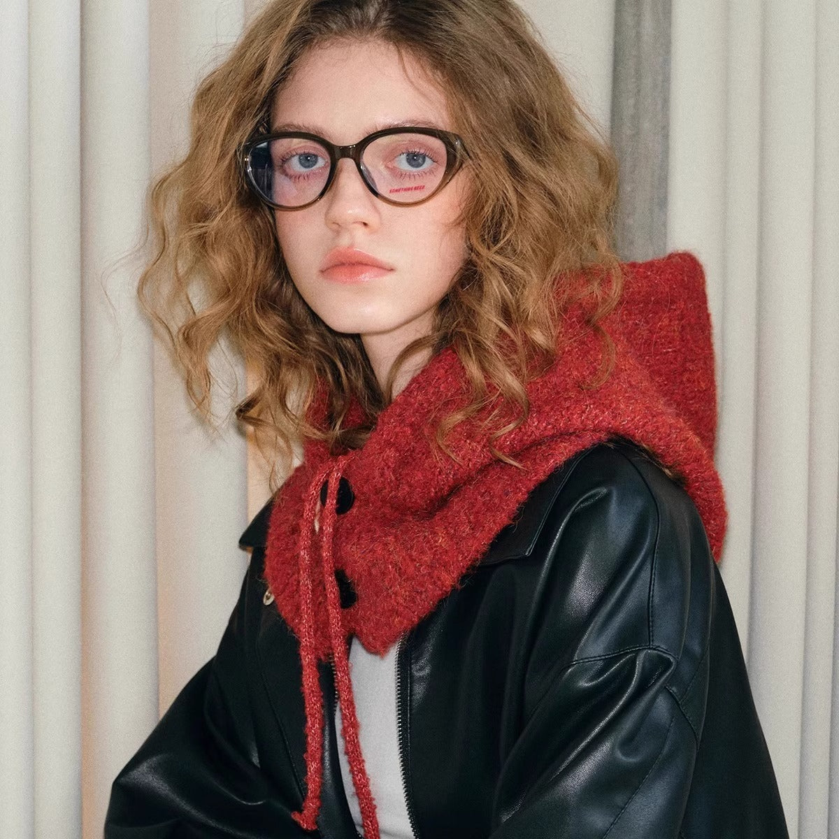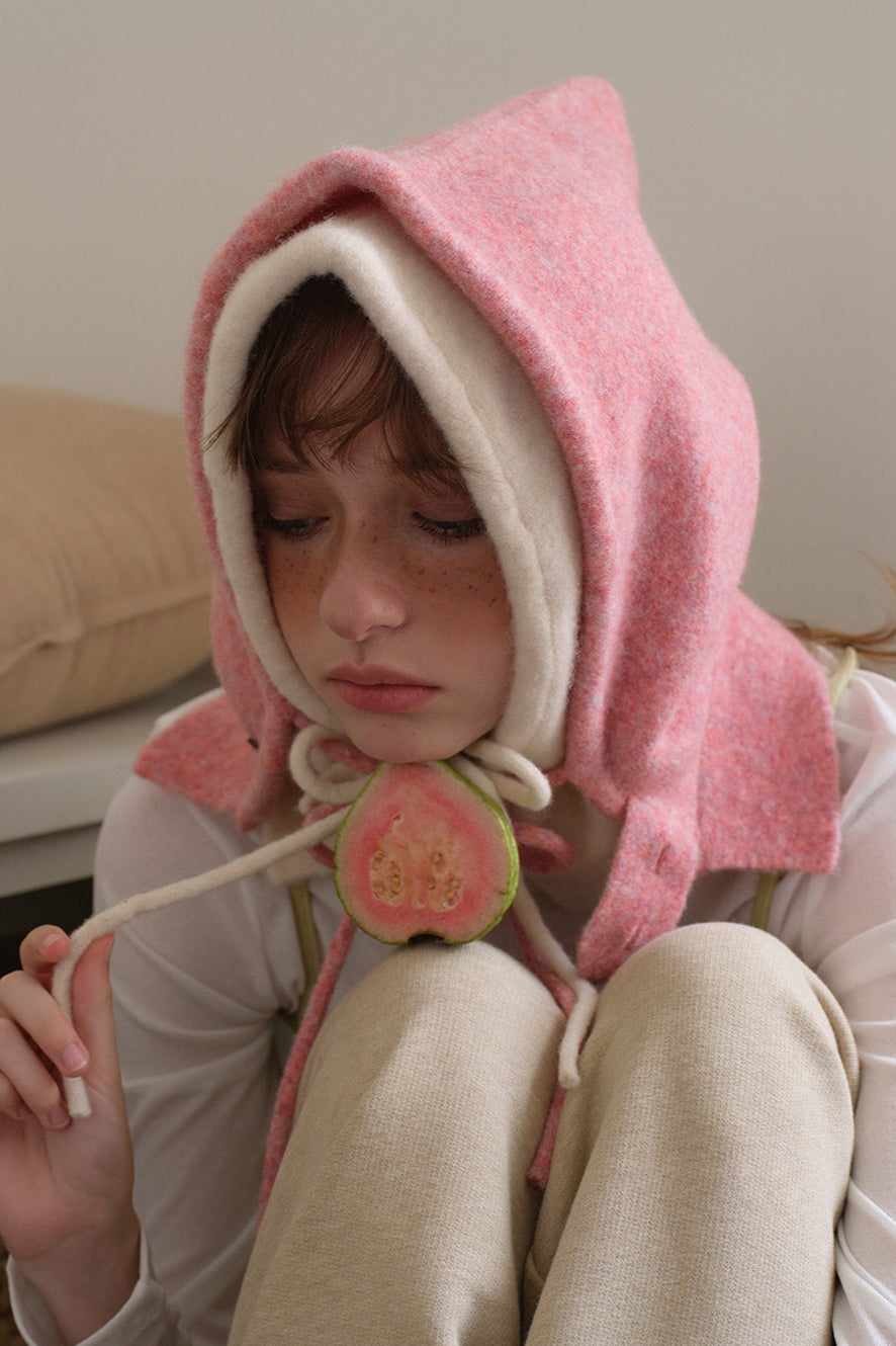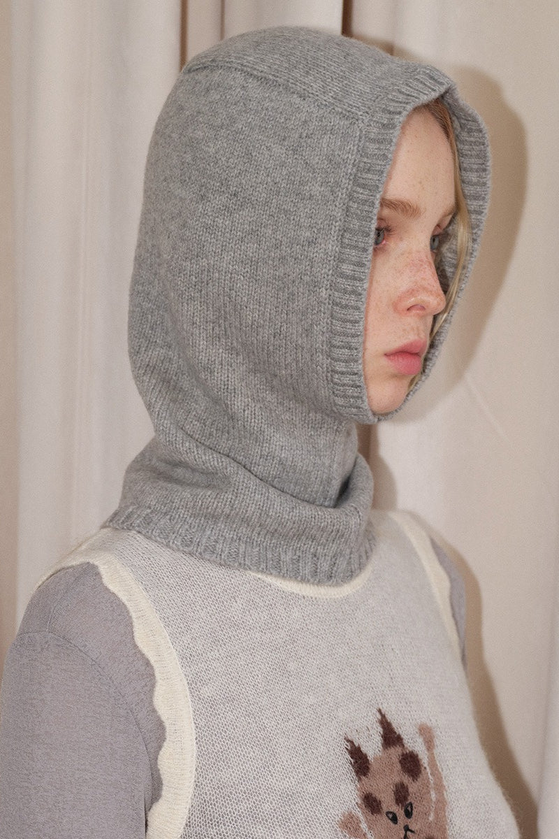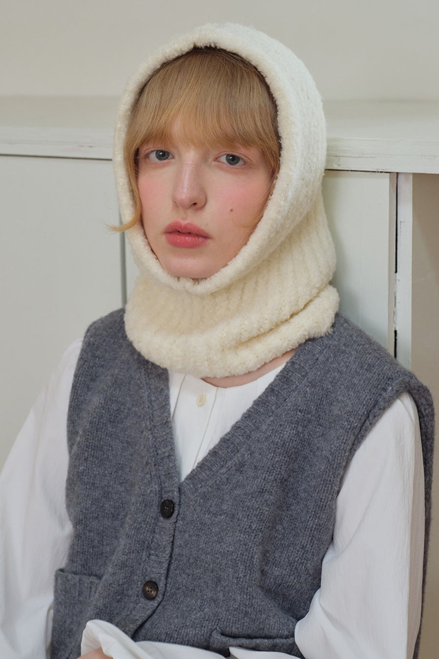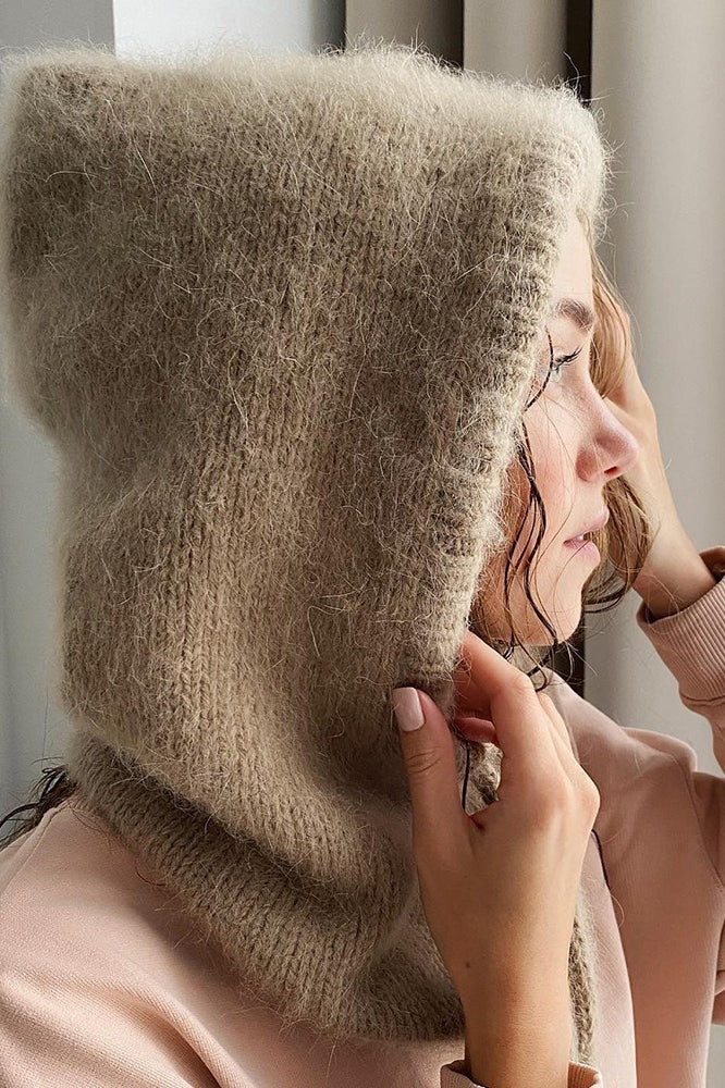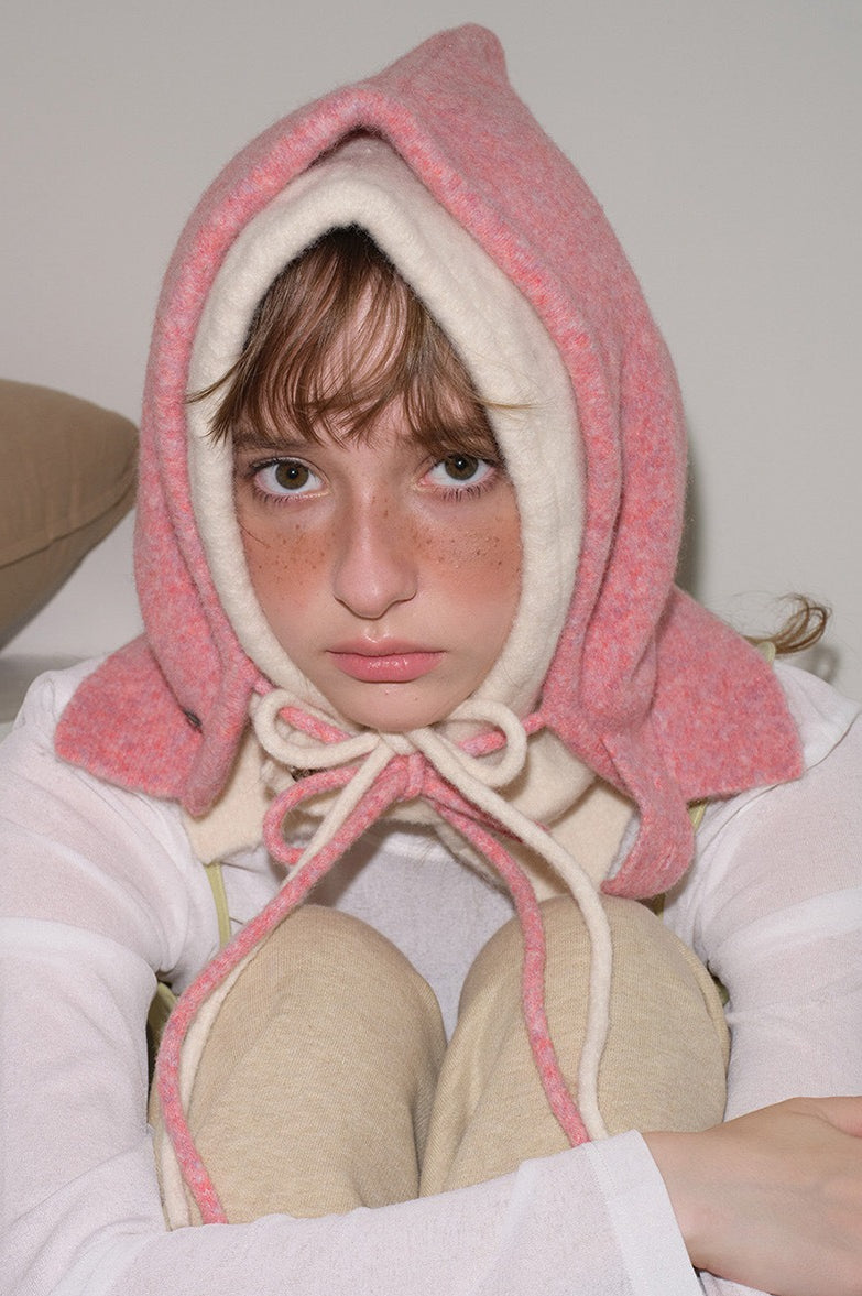 Solid Wool Drawstring Oversized Knitted Balaclava Hat