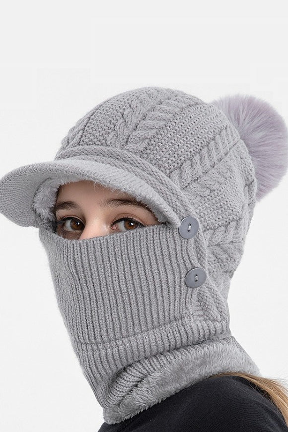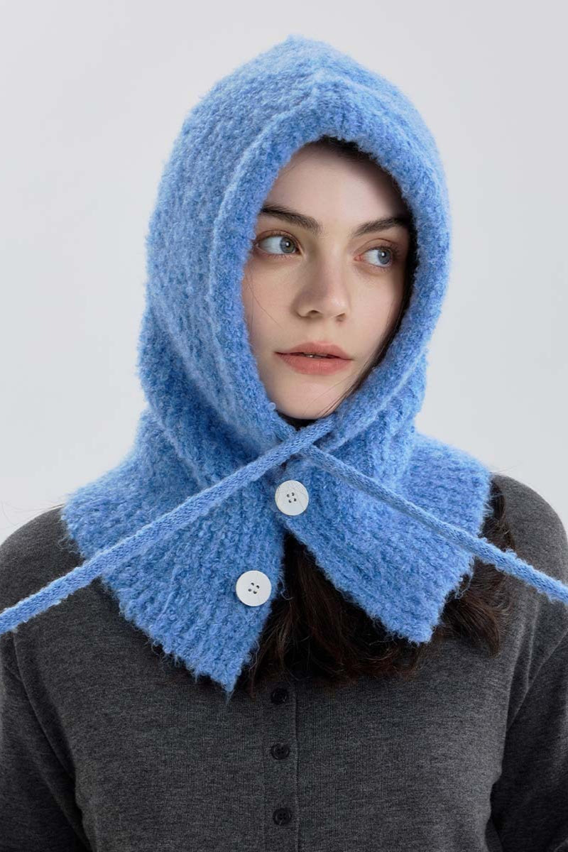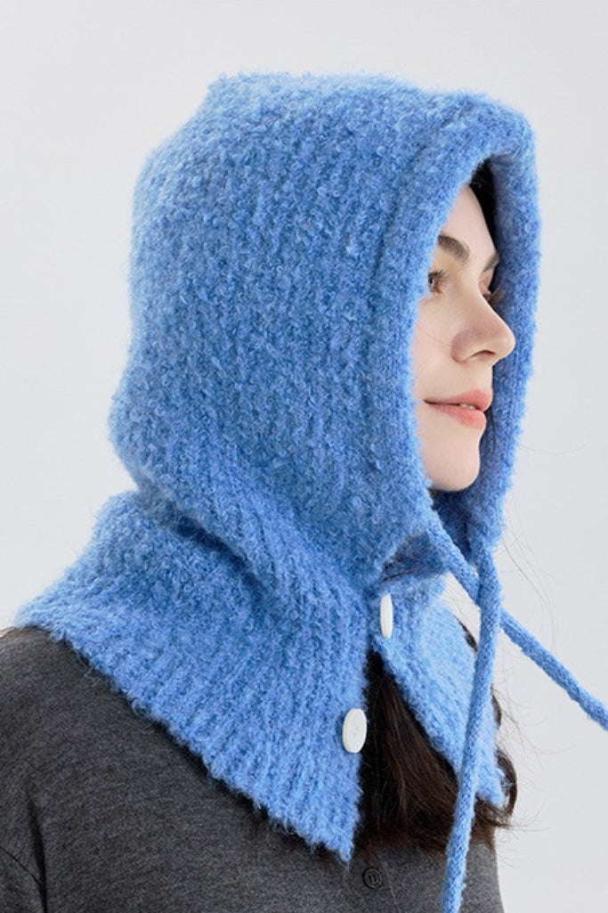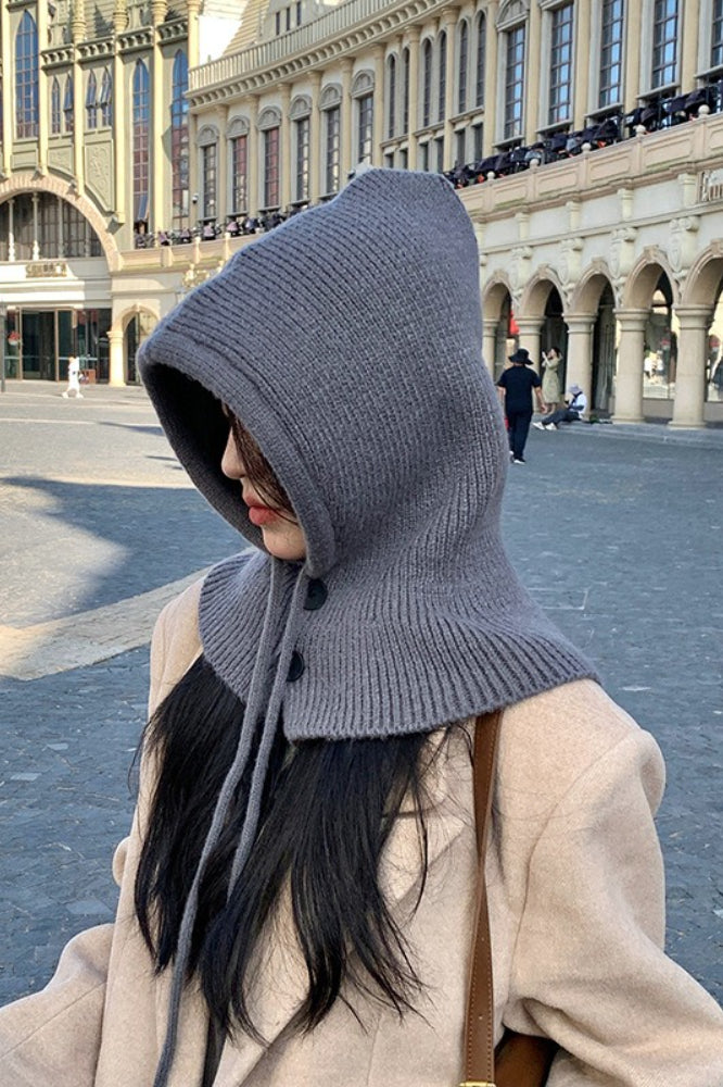 Solid Color Button-Down Balaclava One-Piece Knitted Warm Hat