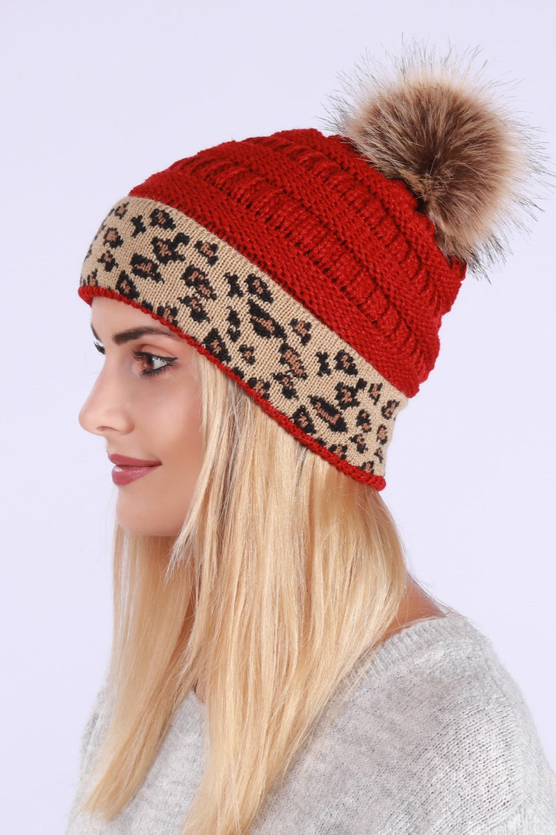 Pure Wool Cat Pattern Color Block Soft Knitted Hat