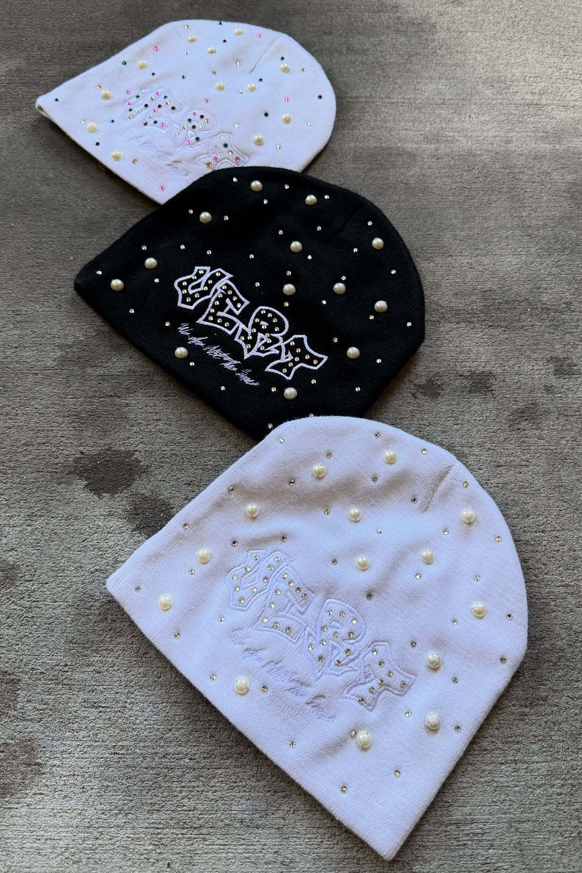 Street Style Pearl Rhinestone Letter Knitted Hat