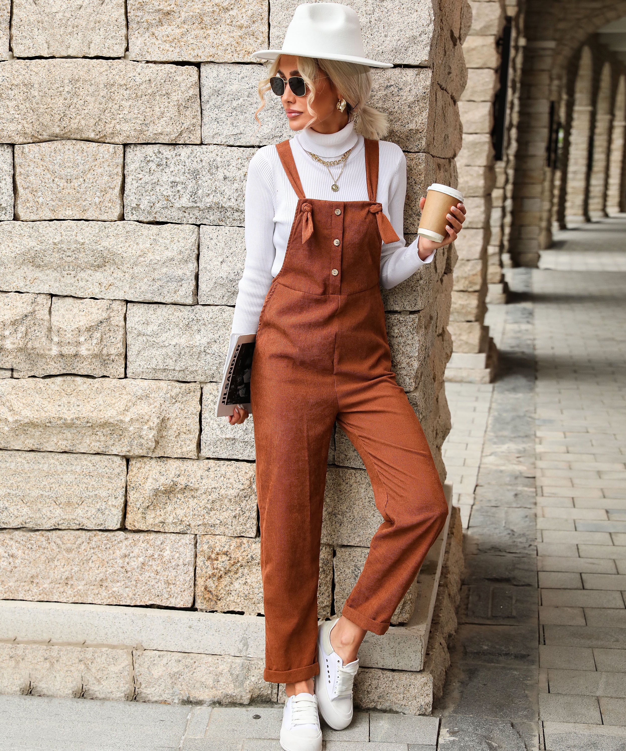 BRADY BELL FALL CORDUROY ROMPERS - CARAMEL
