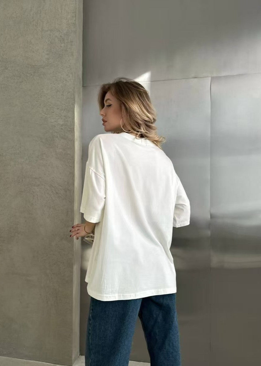 Lover Script Oversized Tee – White Statement Cotton T-Shirt