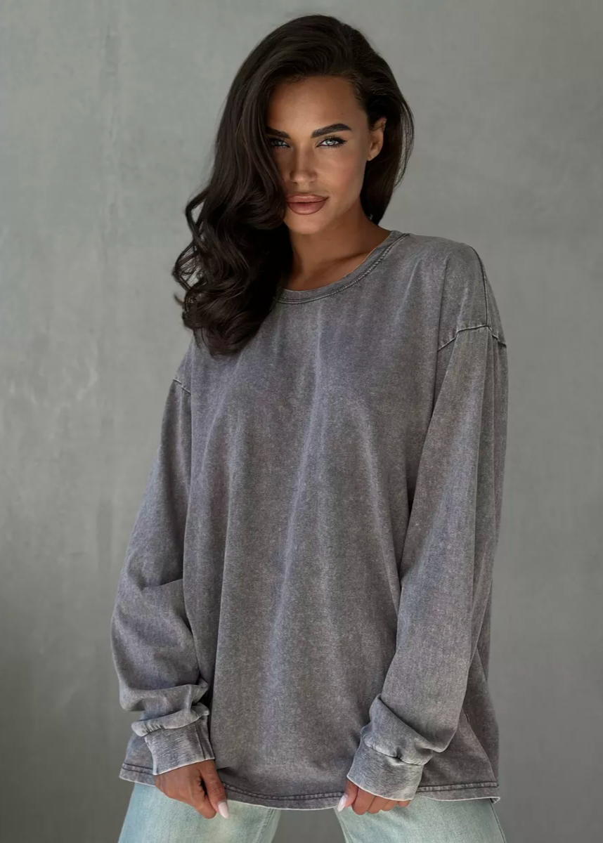Vintage Wash Oversized Long Sleeve T-Shirt – Casual Loose Fit