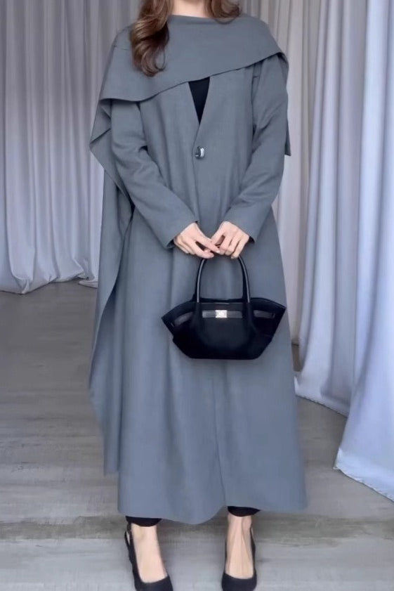 Wool Blend Coat With Front Buttons Loose Fit Chic Casual