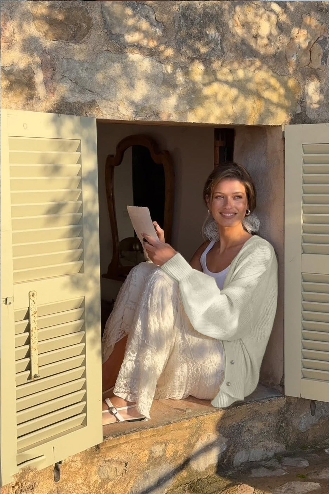 Loose Knit Set with Button Cardigan