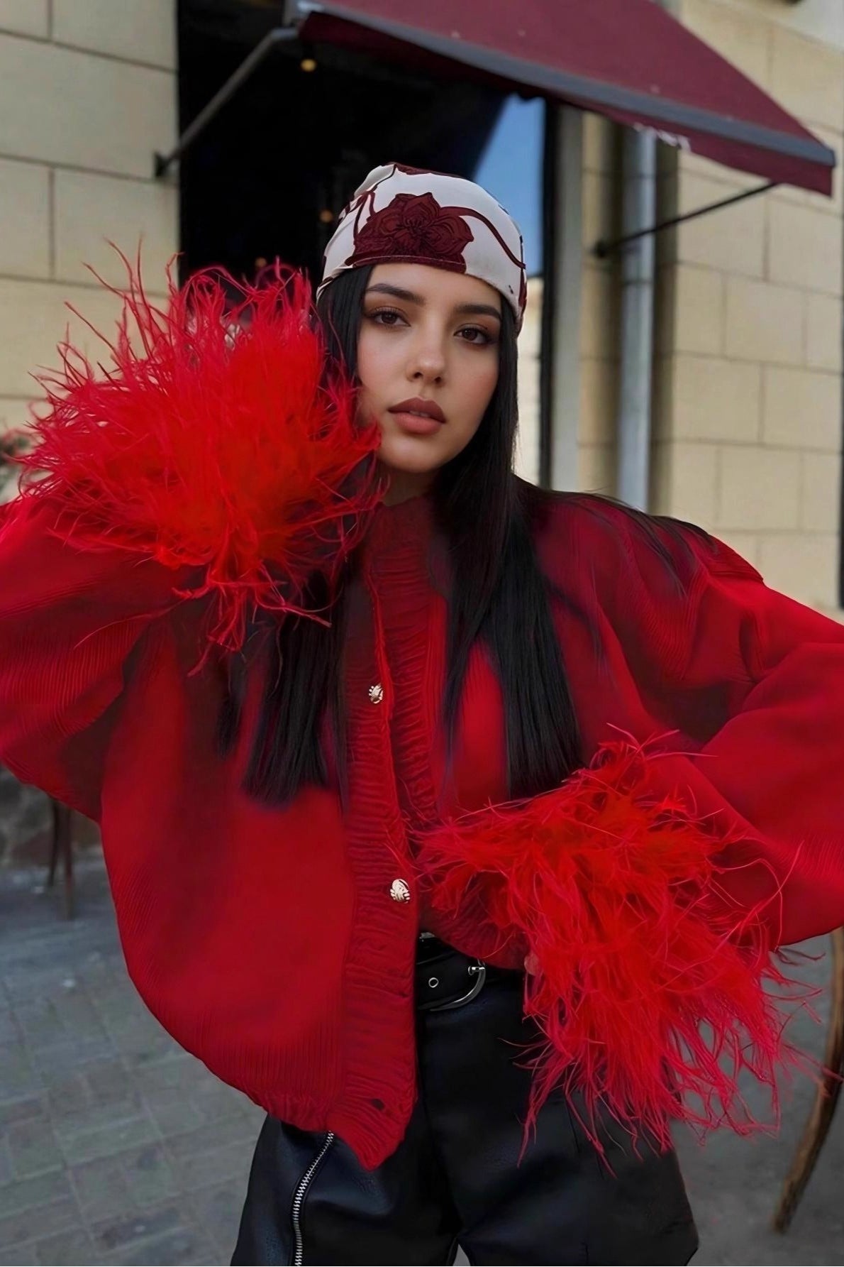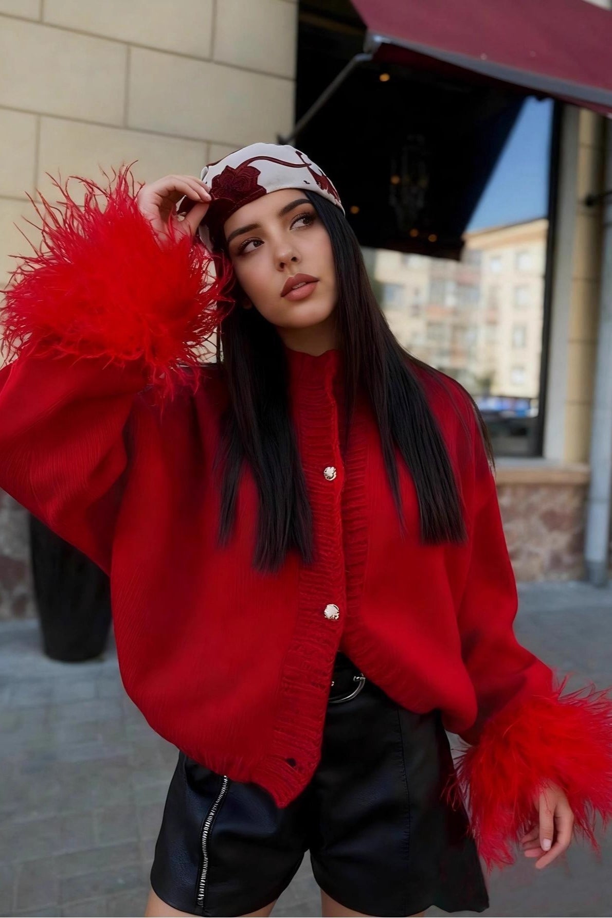 Elegant Feather Trim Cardigan
