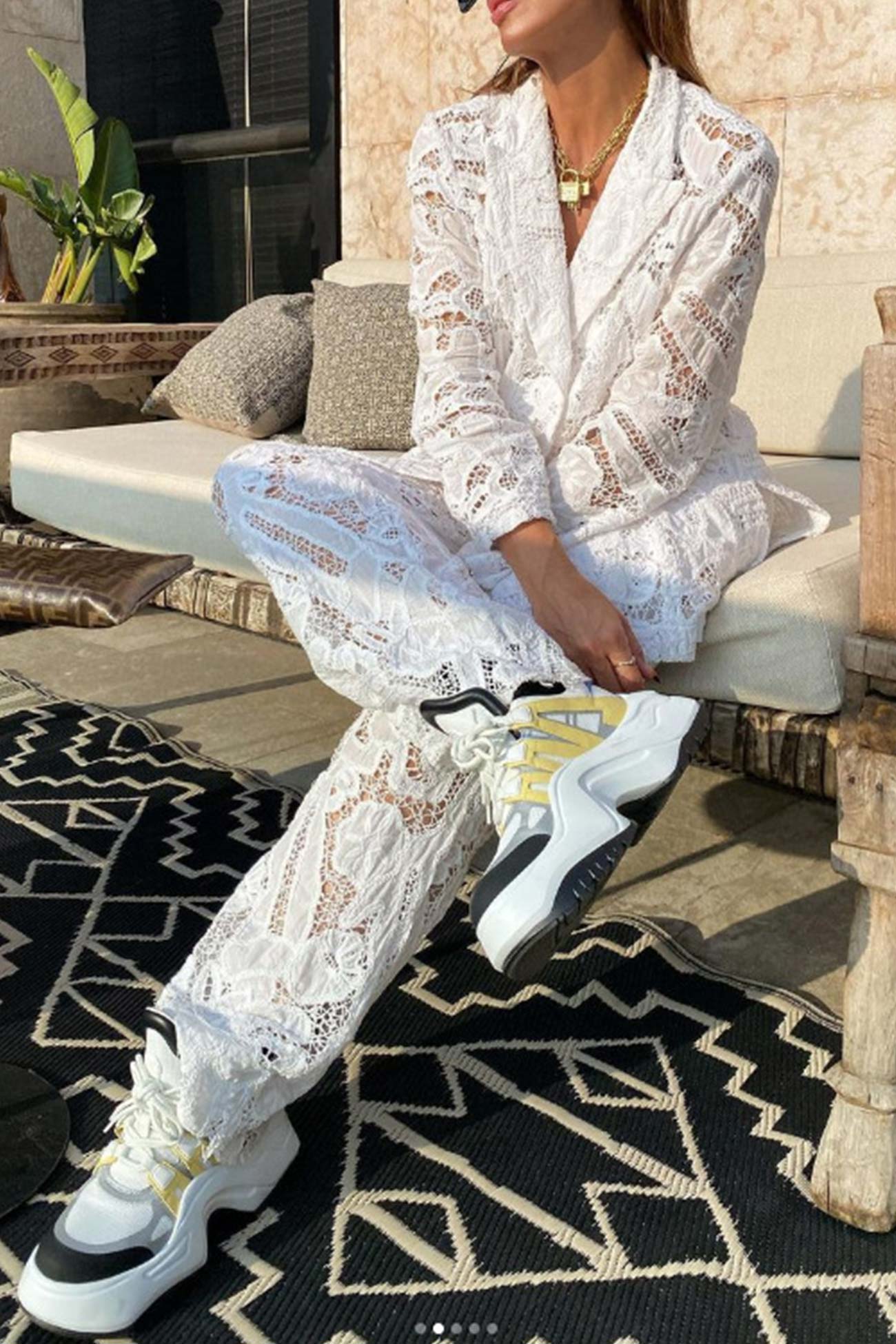 Paloma Black and White Line Printed Button Up Shirt and High Waist Wide Leg Pants Set
