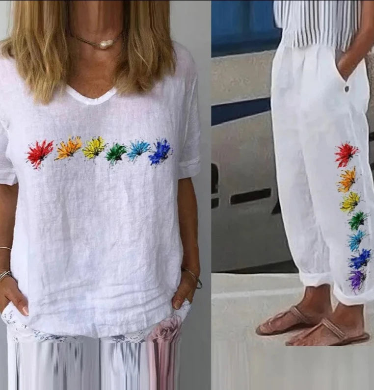 Casual Print Patchwork U Neck T-Shirts(3 Colors)