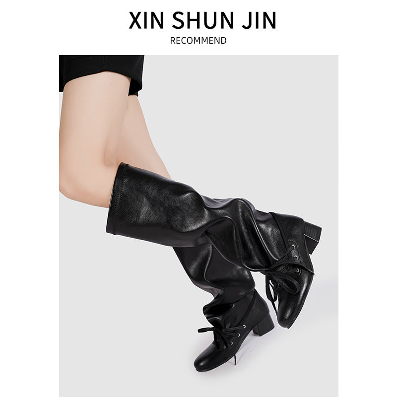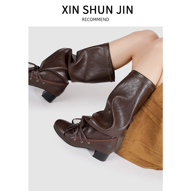 Women's Outer Wear Retro Side Zipper Distressed Pants Tube Boots