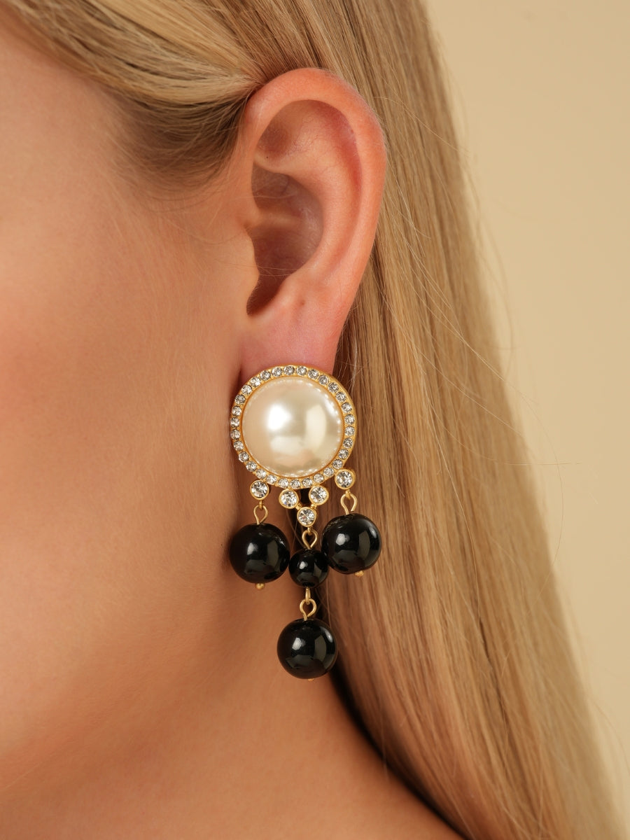 Cicada Pearl Rhinestone Embellished Stud Earrings