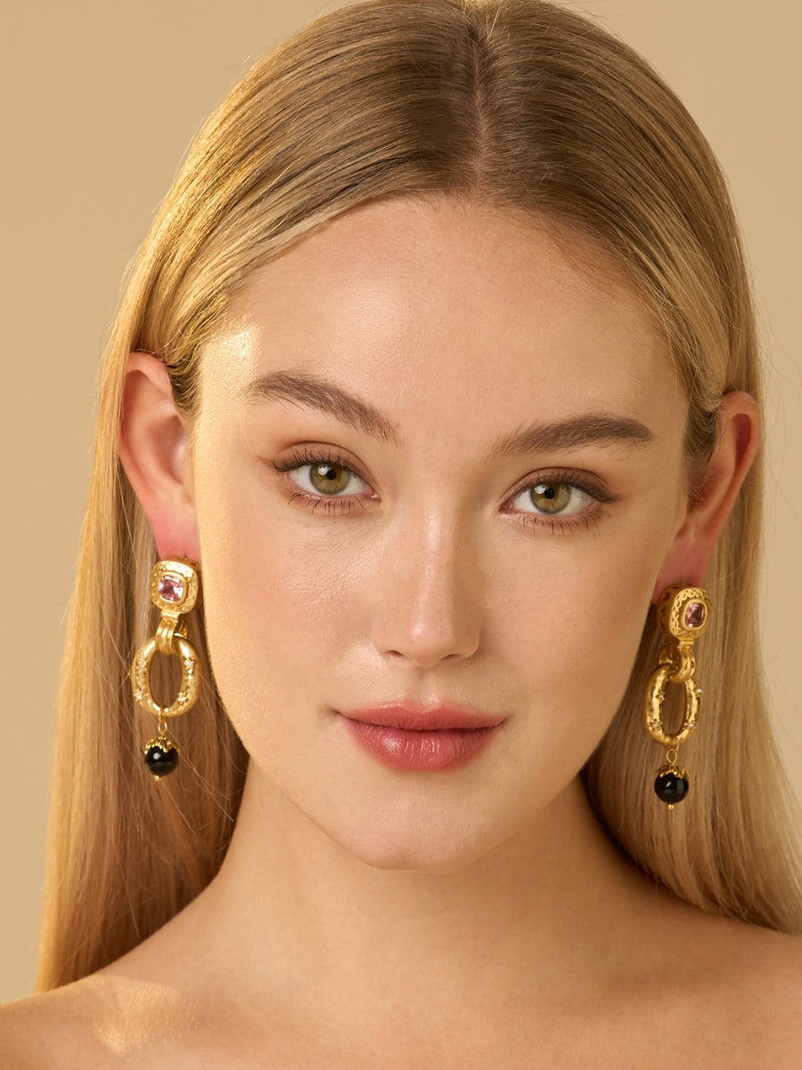 Cat's Eye Stone Gold Plated Jacket Earrings