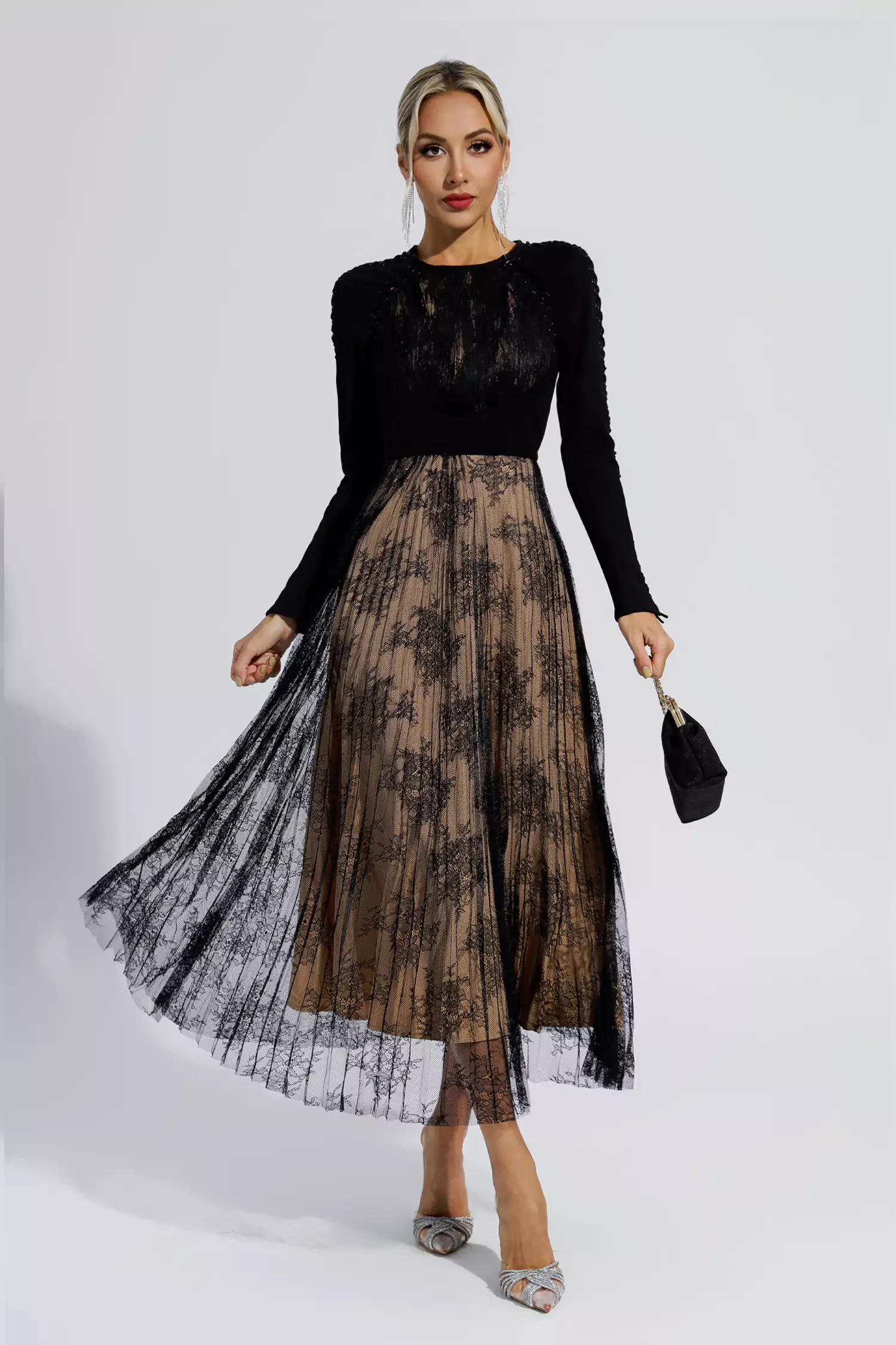 Itzel Black Lace Long Sleeve Maxi Dress