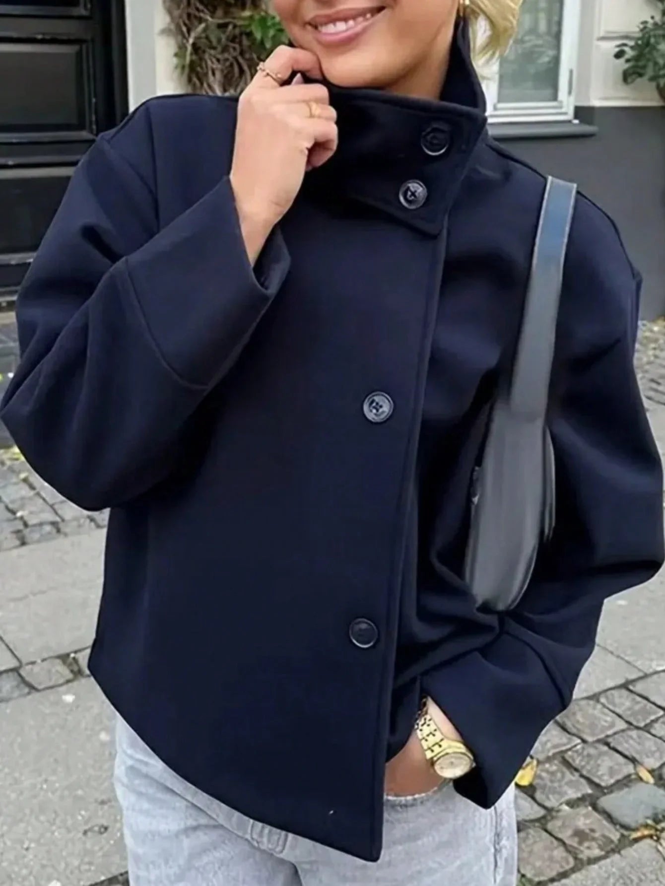 Wool Blend Coat With Front Buttons Loose Fit Chic Casual