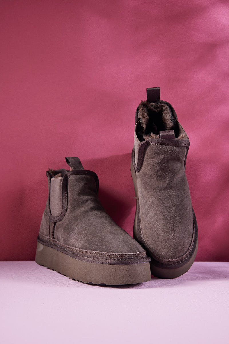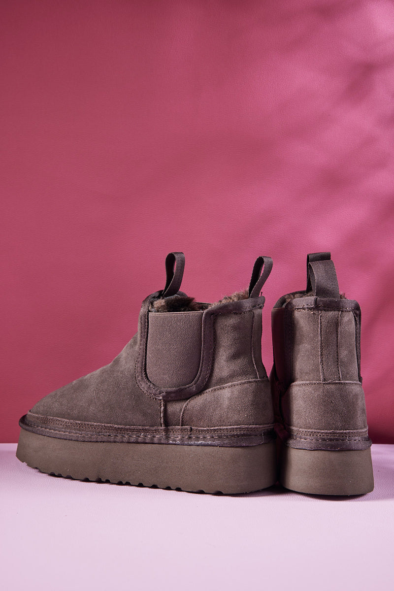 The Chelsea On The Land Boots are the ultimate in luxurious shearling footwear. Crafted in chestnut suede and featuring a low ankle cut, these boots make a classic statement while offering unparalleled warmth and comfort. Indulge in the sophisticated beauty of these boots and go for the luxe-look.