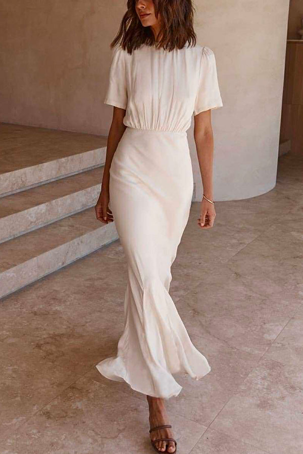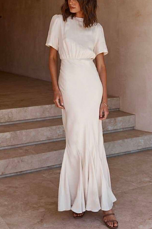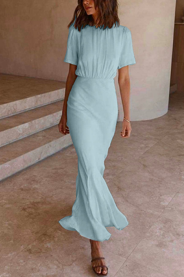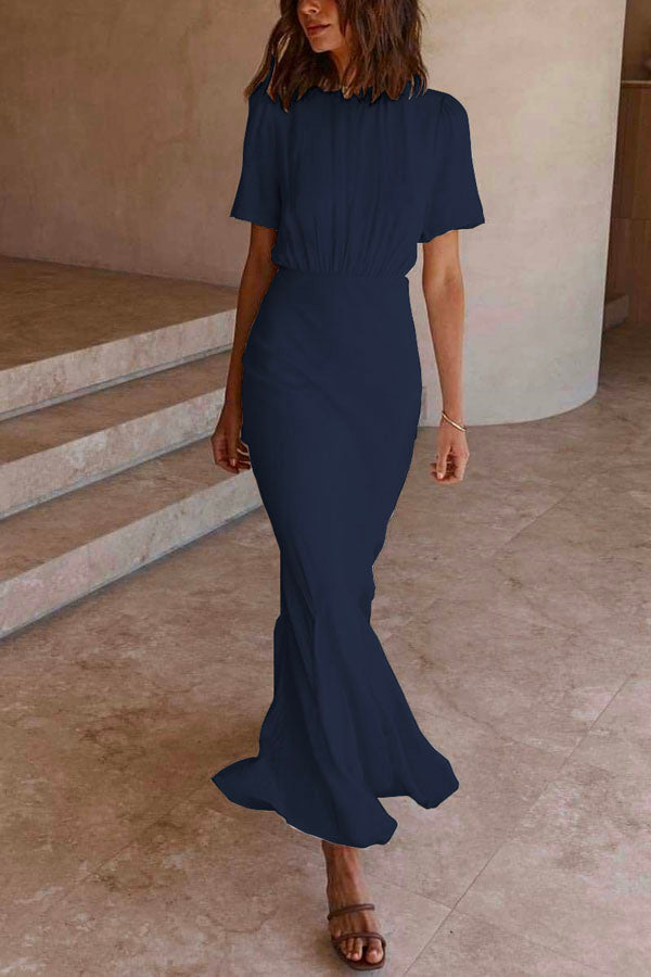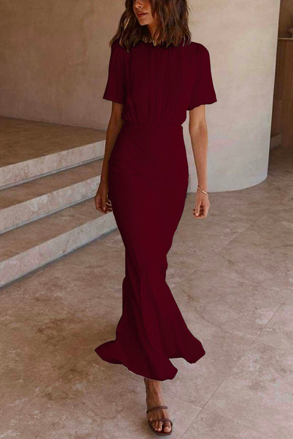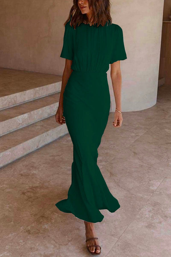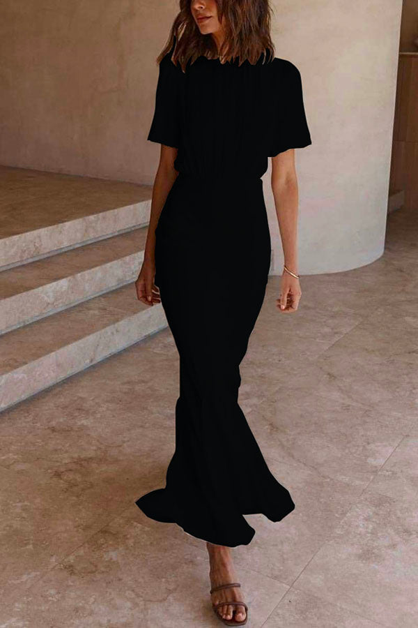 Short Sleeve Waisted Bodycon Fishtail Dress(6 Colors Available)