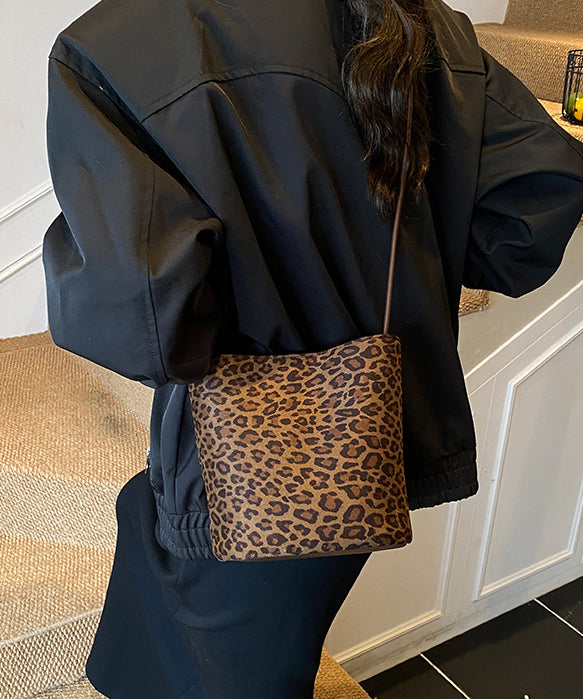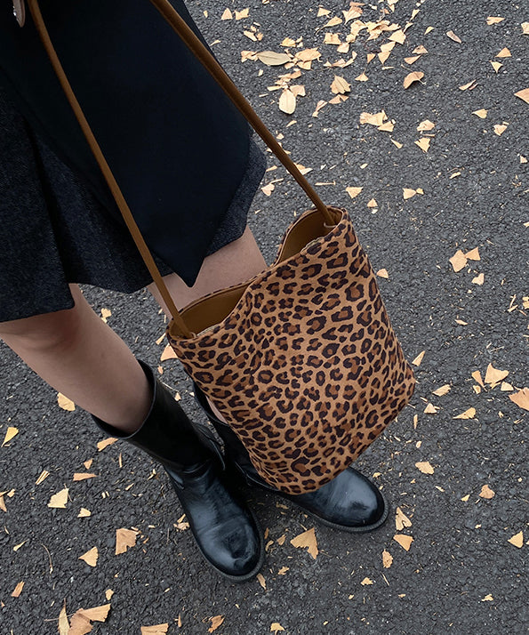 2025 New Suede Brown Leopard Print Bucket Bag