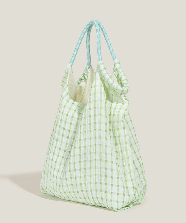 Art Green Plaid Large Capacity Nylon Shoulder Handbag