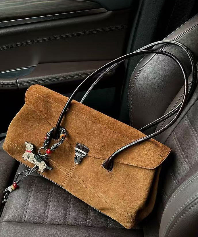 Beautiful Khaki Patchwork Durable Faux Suede Shoulder Bags