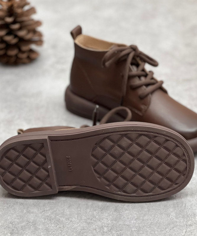 Black Cowhide Leather Flat Boots Casual Lace Up Ankle Boots