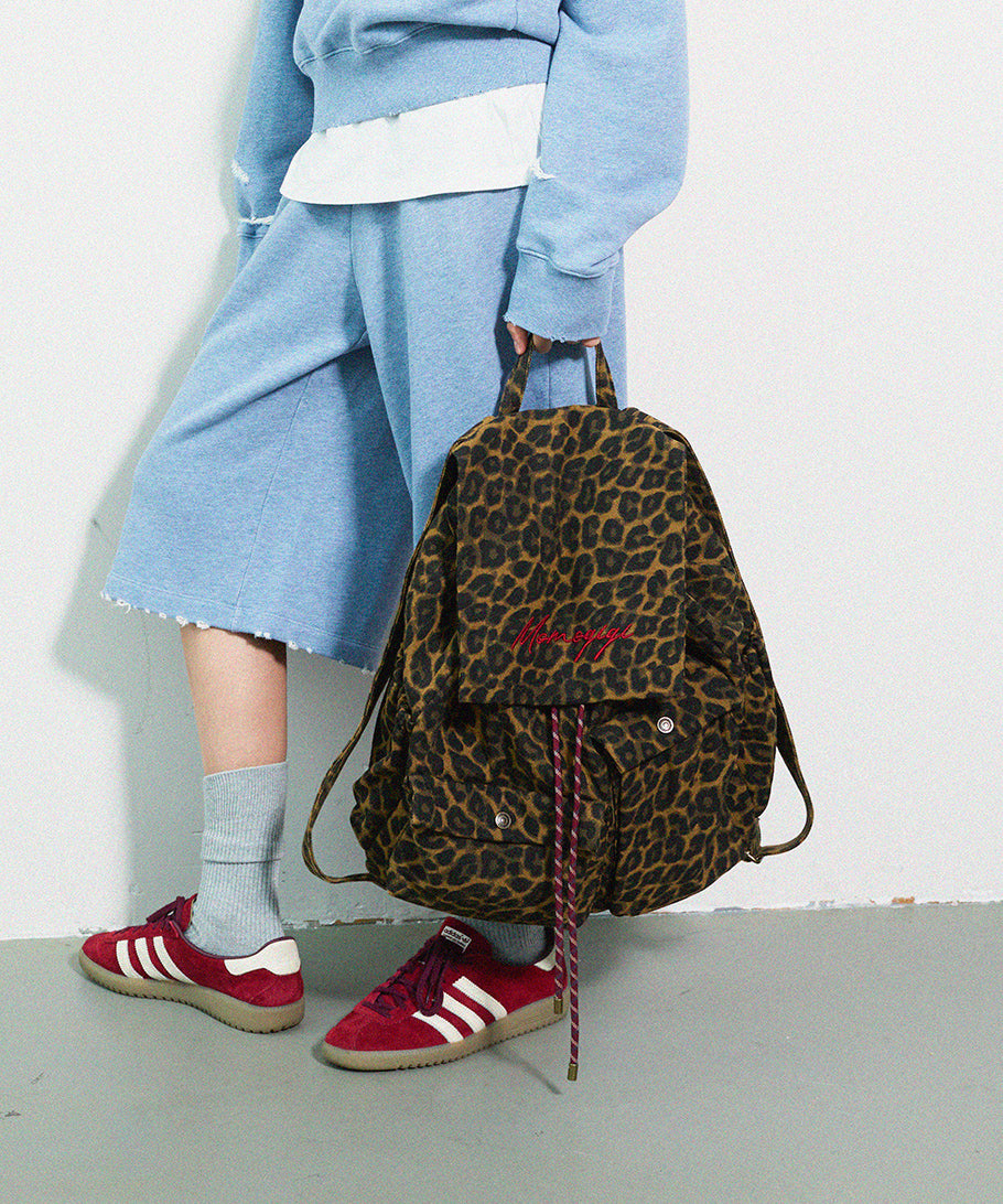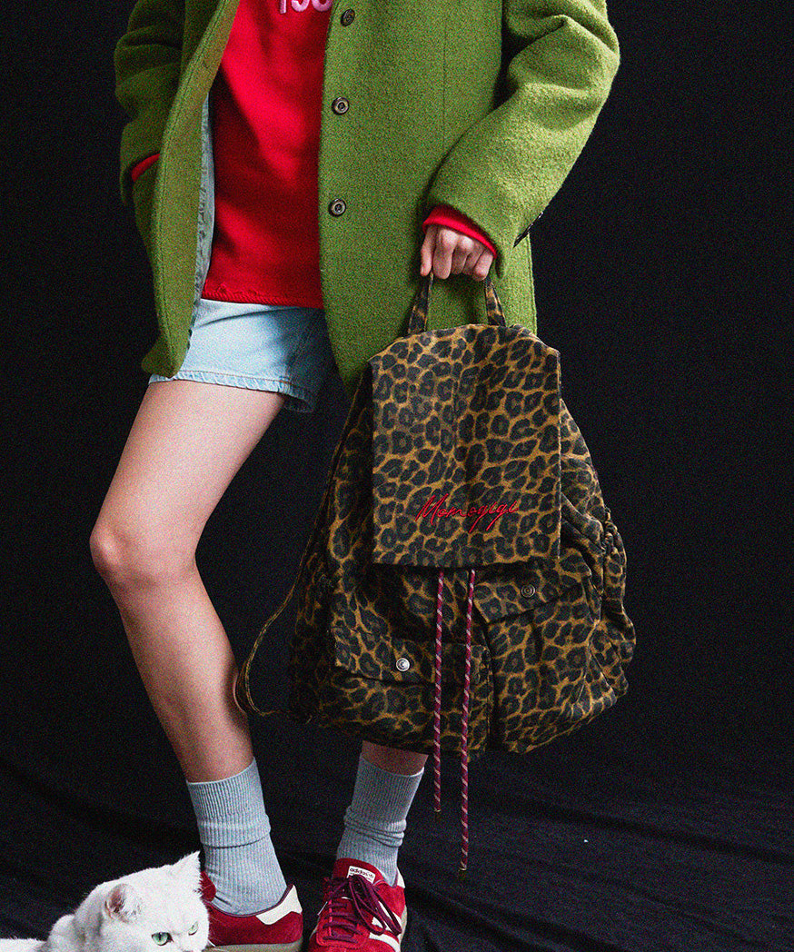Chic Brown Leopard Embroidered Canvas Backpack Bag