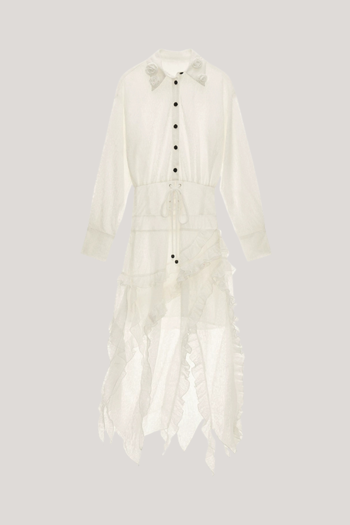 The Ciprian Asymmetric Lace Maxi Shirt Dress blends expert tailoring with sophisticated design. Featuring delicate lace accents and an asymmetric hem, this dress offers a refined silhouette that gracefully enhances your presence. Its maxi length ensures elegant coverage, while the shirt-style bodice provides a structured yet comfortable fit, making it ideal for both formal occasions and upscale casual settings. Crafted for those who appreciate nuanced detail and timeless style.