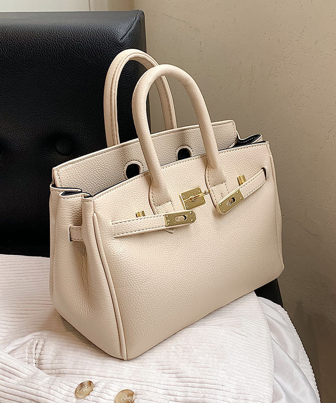 Classy Khaki Faux Leather Solid Durable Tote Handbag