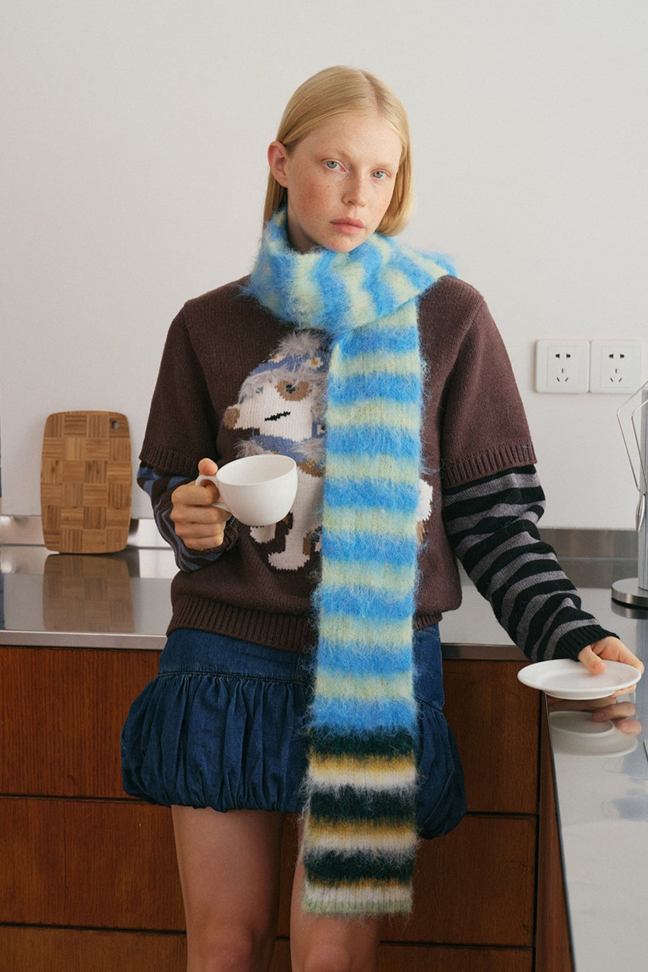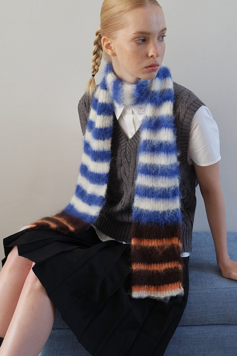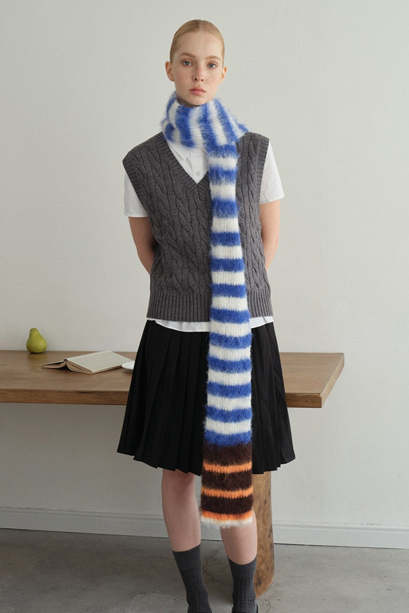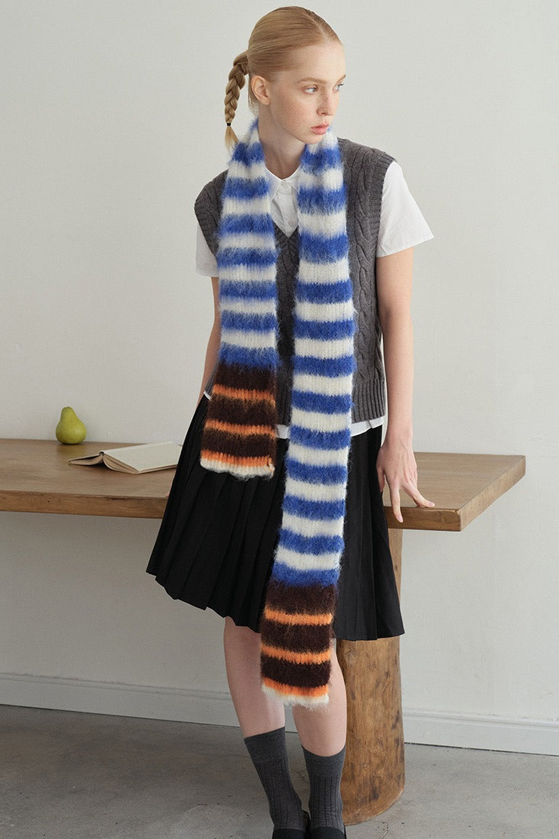 • Length: Mid-length• Composition: Acrylic• Craftsmanship: Knitting• Knitting Method: Weft Knitting• Style: Hand-painted, Punk, Street• Function: Warmth• Details: Stripes Scarf