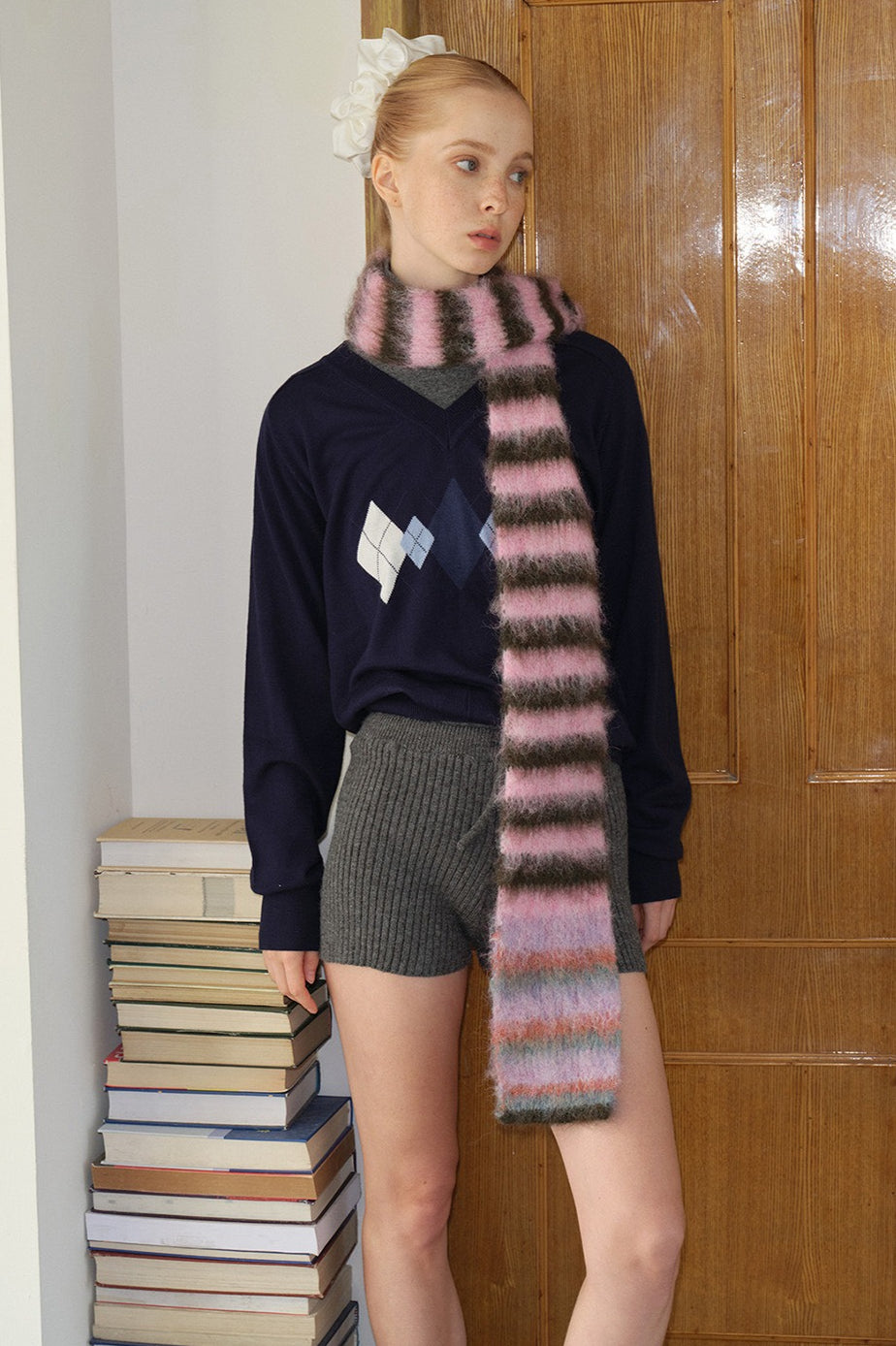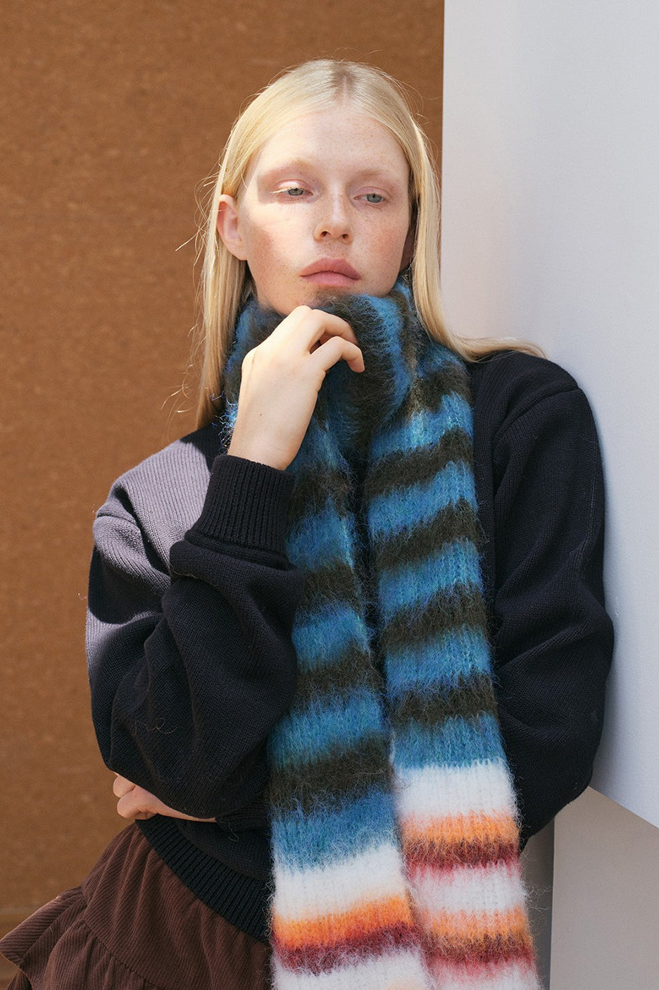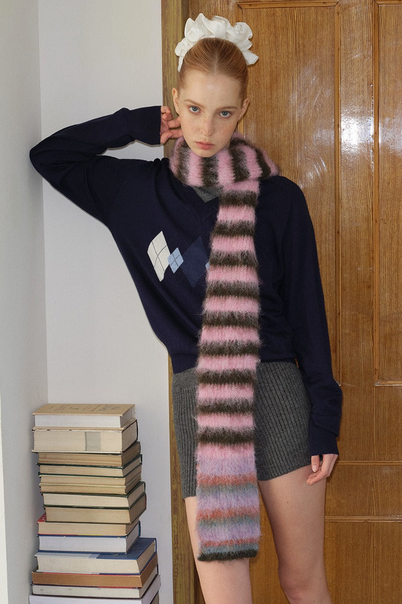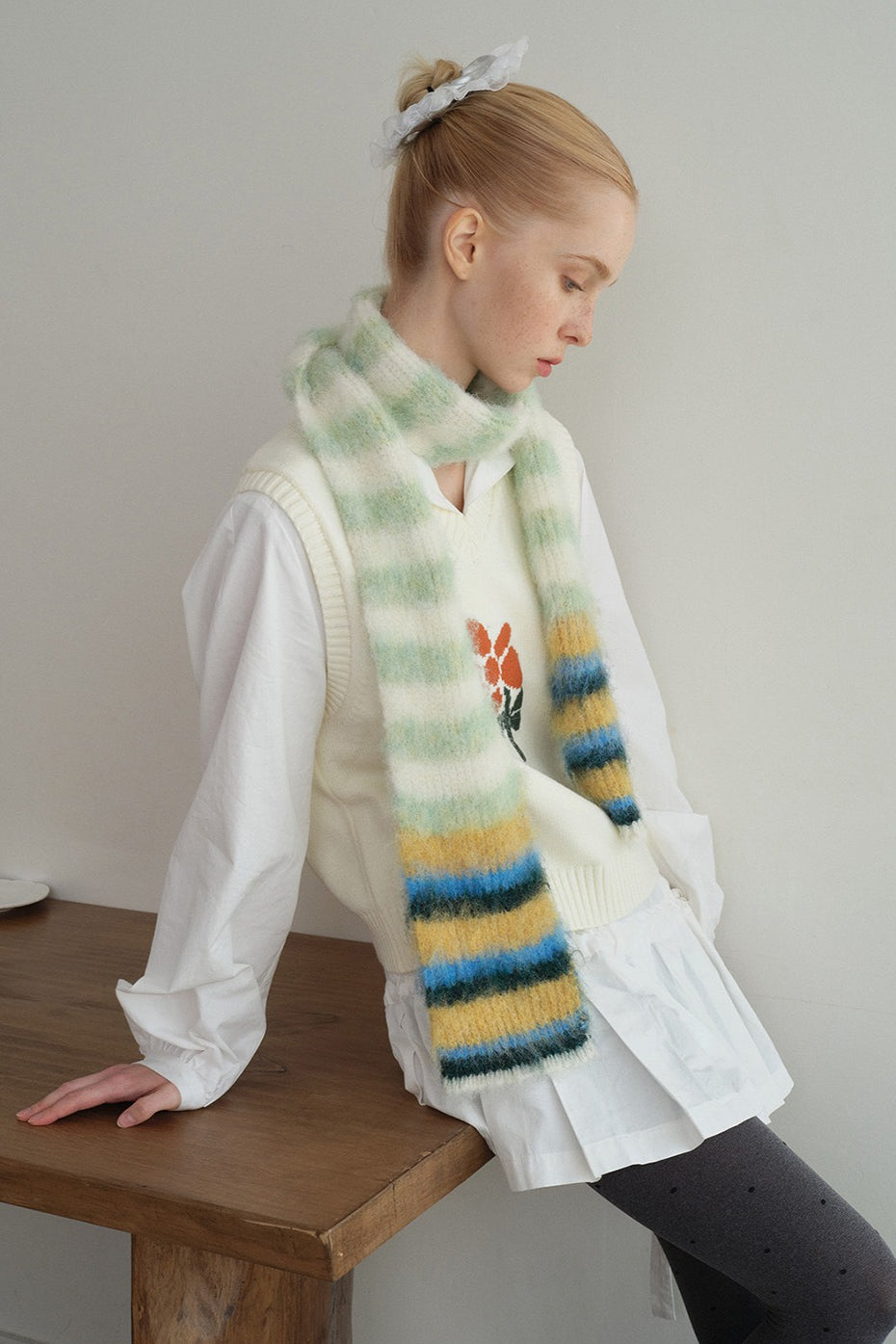• Length: Mid-length• Composition: Acrylic• Craftsmanship: Knitting• Knitting Method: Weft Knitting• Style: Hand-painted, Punk, Street• Function: Warmth• Details: Stripes Scarf