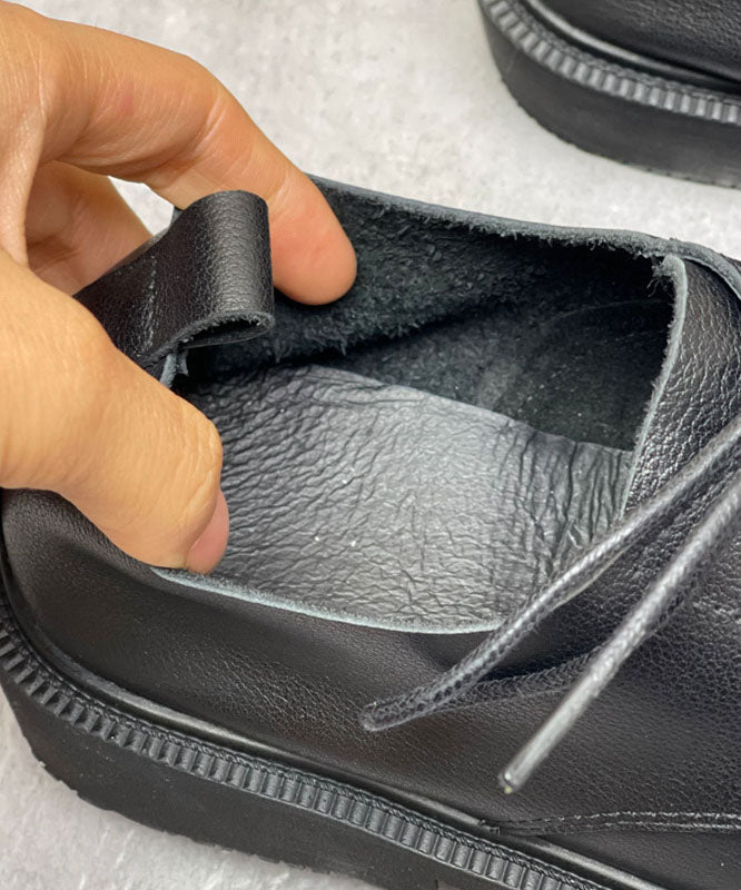 Cowhide Leather Flat Shoes Lace Up Flat Feet Shoes