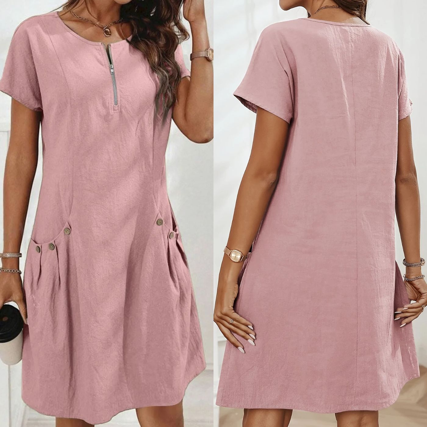 ✔️ Flattering Design – A midi-length silhouette with subtle button details that works for every figure and every occasion.