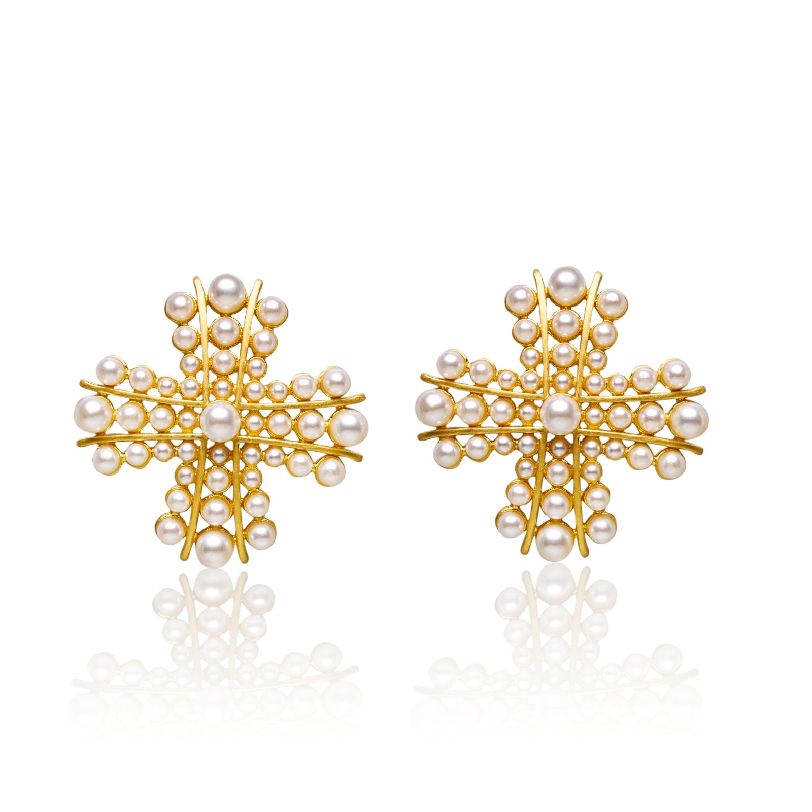 Add a touch of sophistication to any ensemble with our Cross Pearl Gold Plated Stud Earrings. Crafted with a delicate cross design and lustrous pearls, these earrings elevate your style and add a sense of luxury. Perfect for any occasion, these studs are a must-have in your jewelry collection.