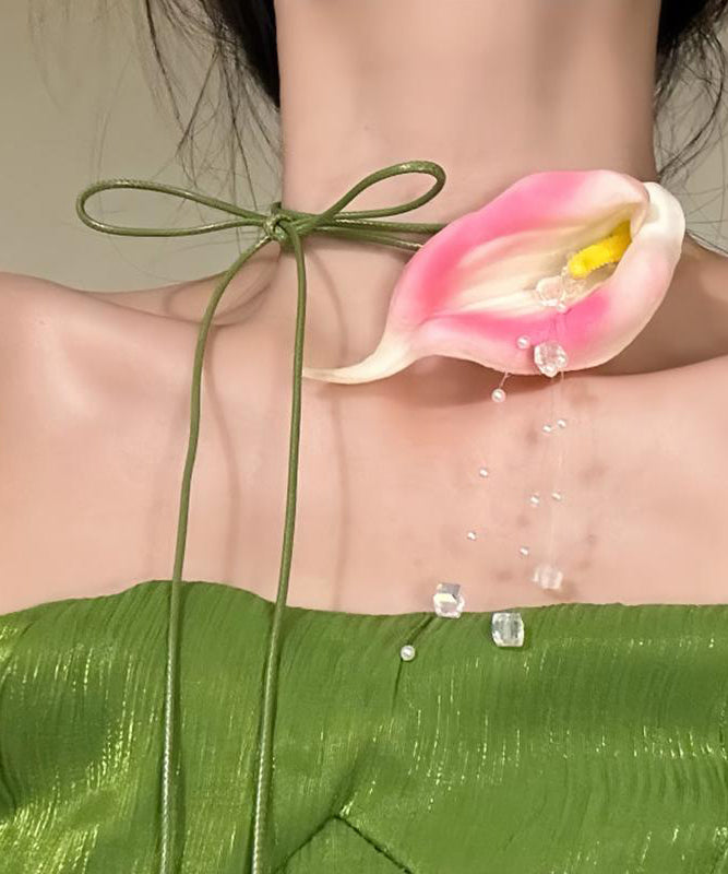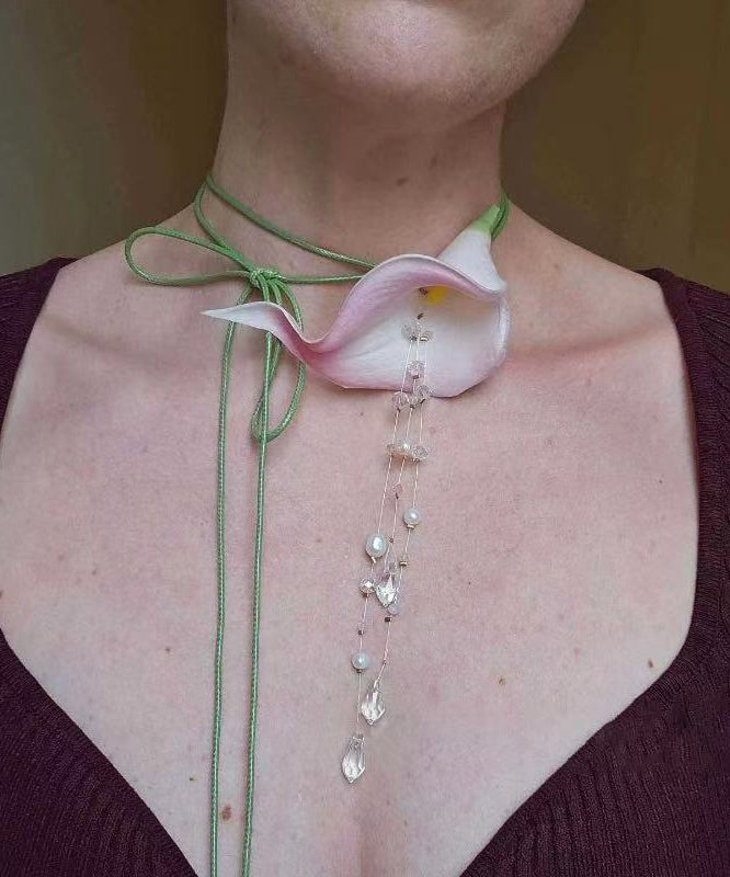 Cute Green Pearl Horseshoe Lotus Tassel Princess Necklace
