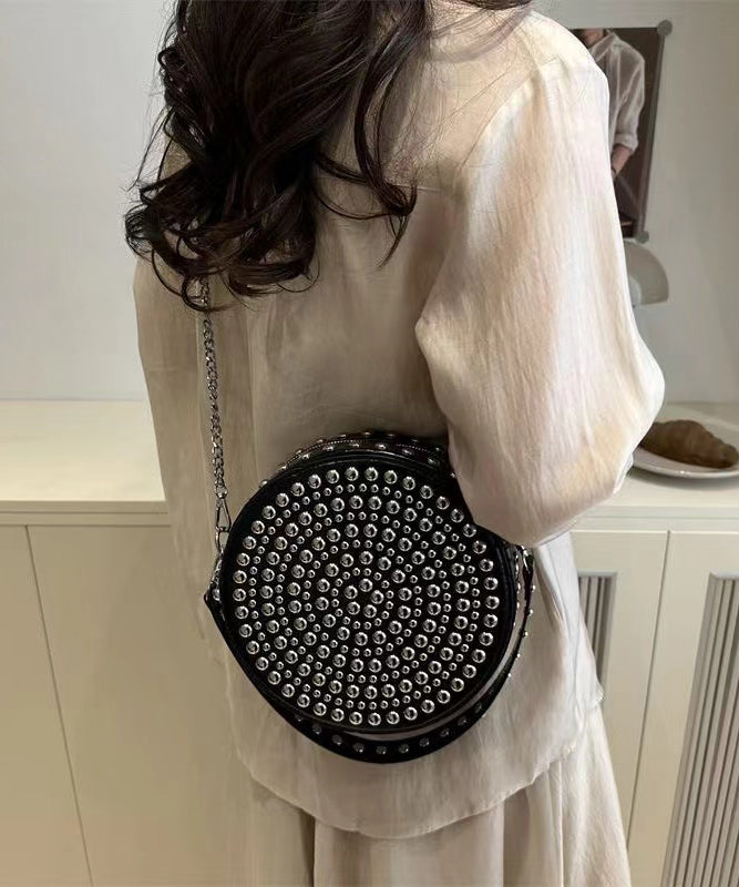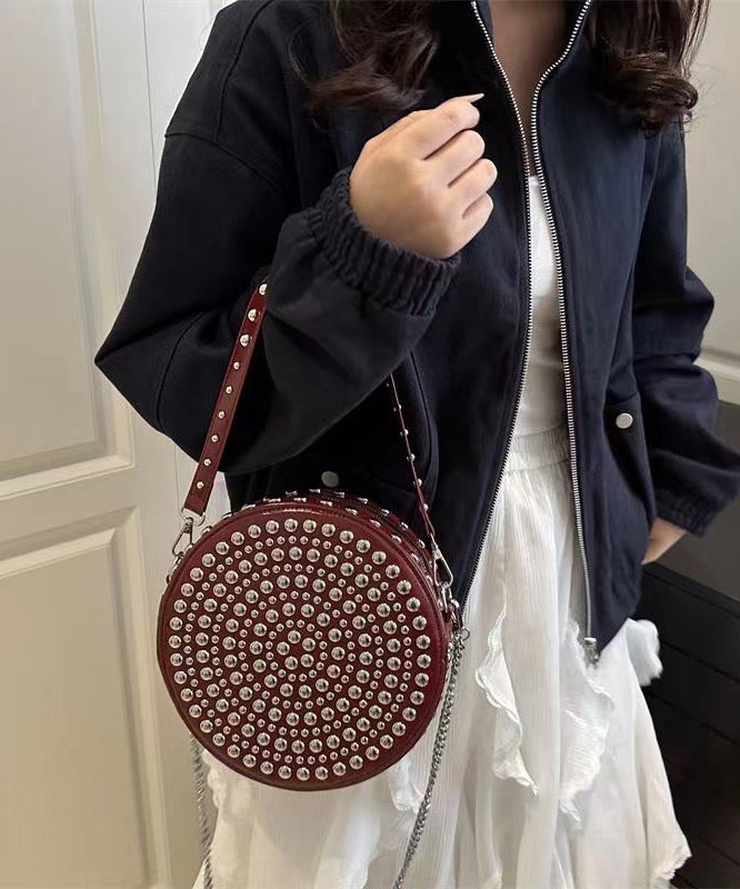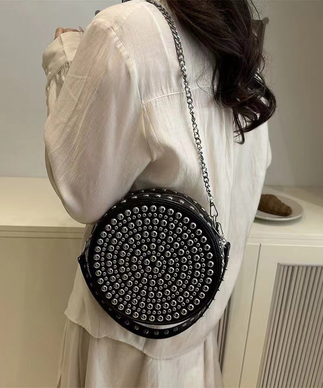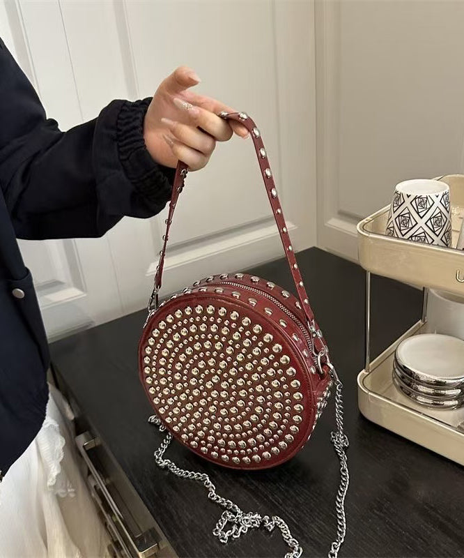 DIY Mulberry Rivet Solid Durable Faux Leather CrossBody Round Bag