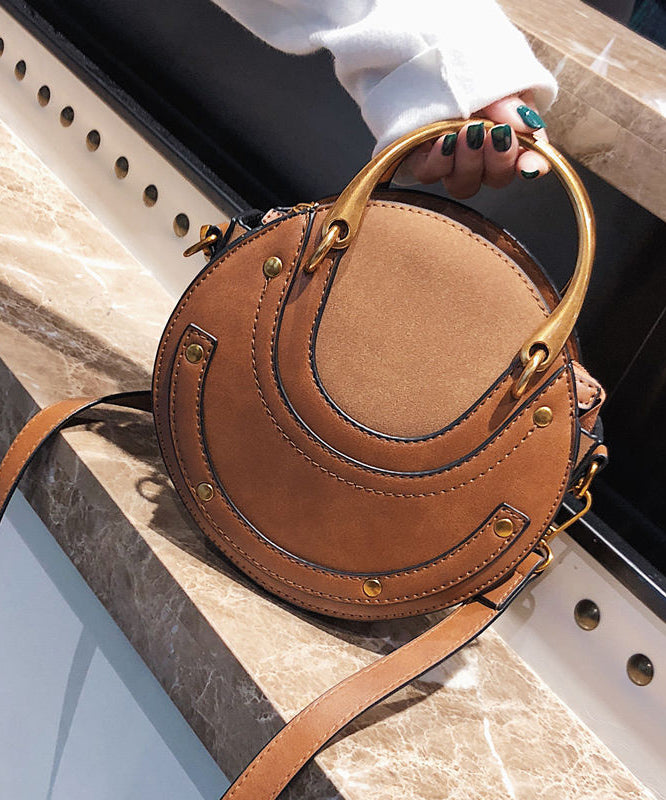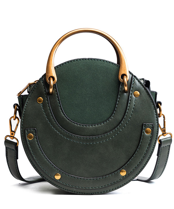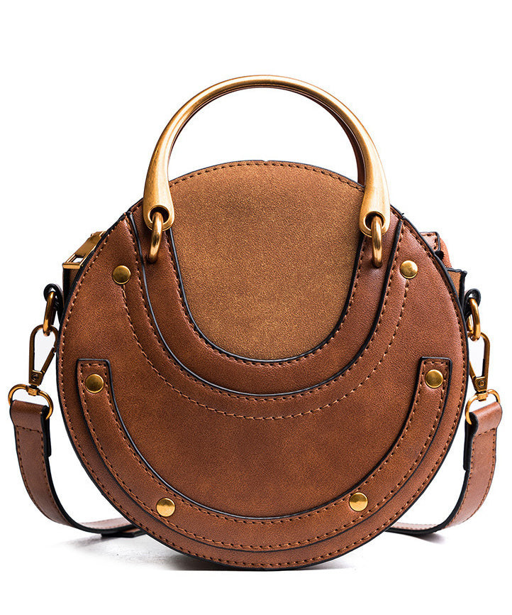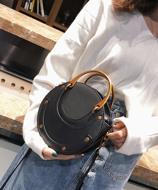 DIY Rivet Solid Durable Faux Leather Tote Handbag Round Bag