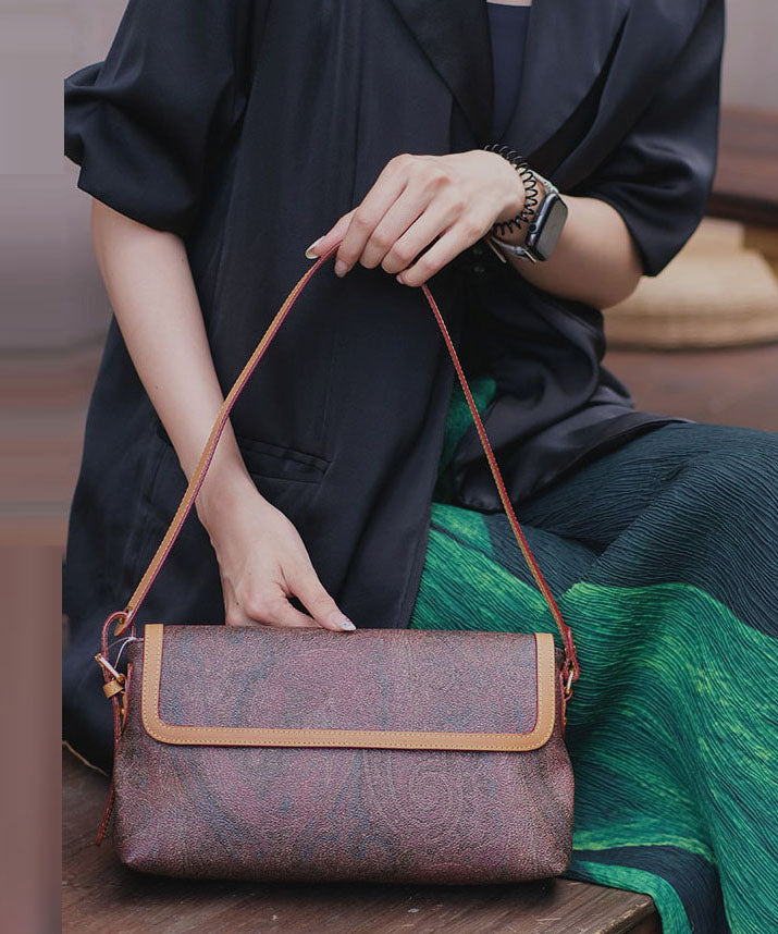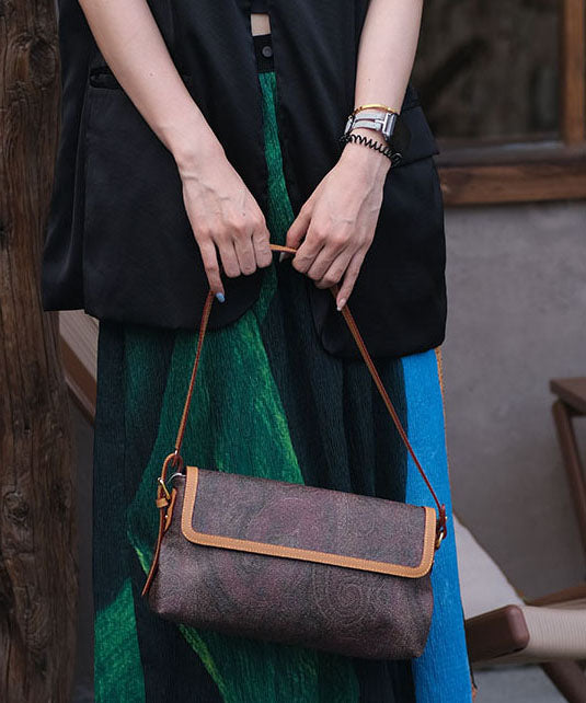Elegant Chocolate Jacquard Durable Leather Shoulder Bags