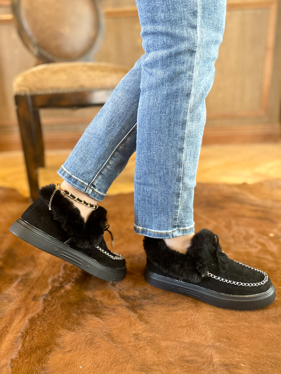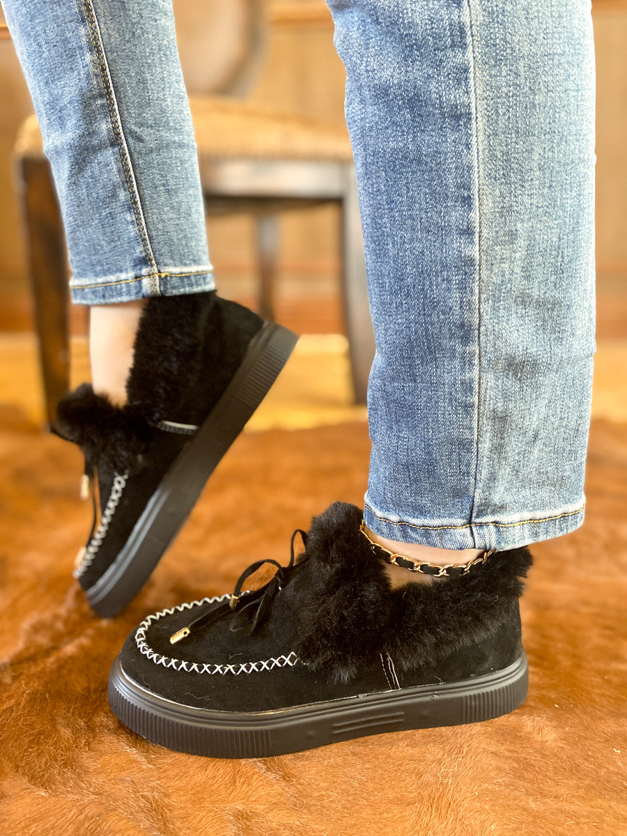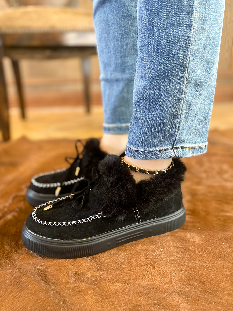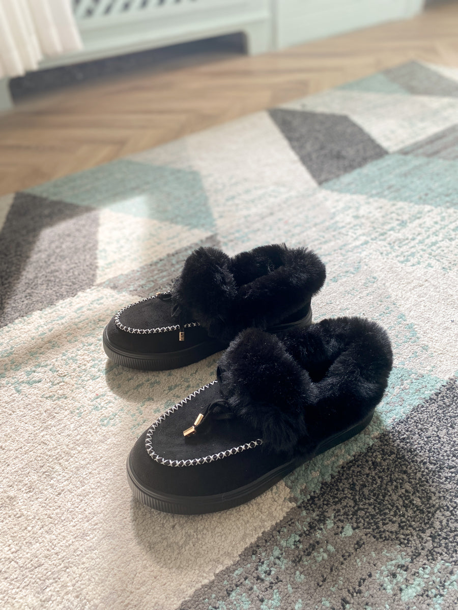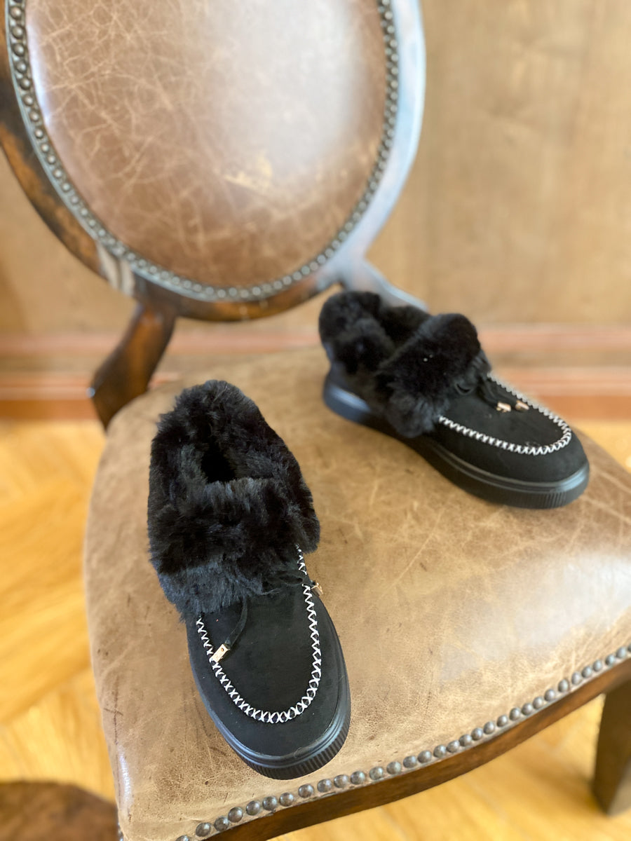 Update your lounge-ready footwear rotation with the style and comfort of this loafer designed with soft suede and cozy faux-fur lining to give you extra warm.