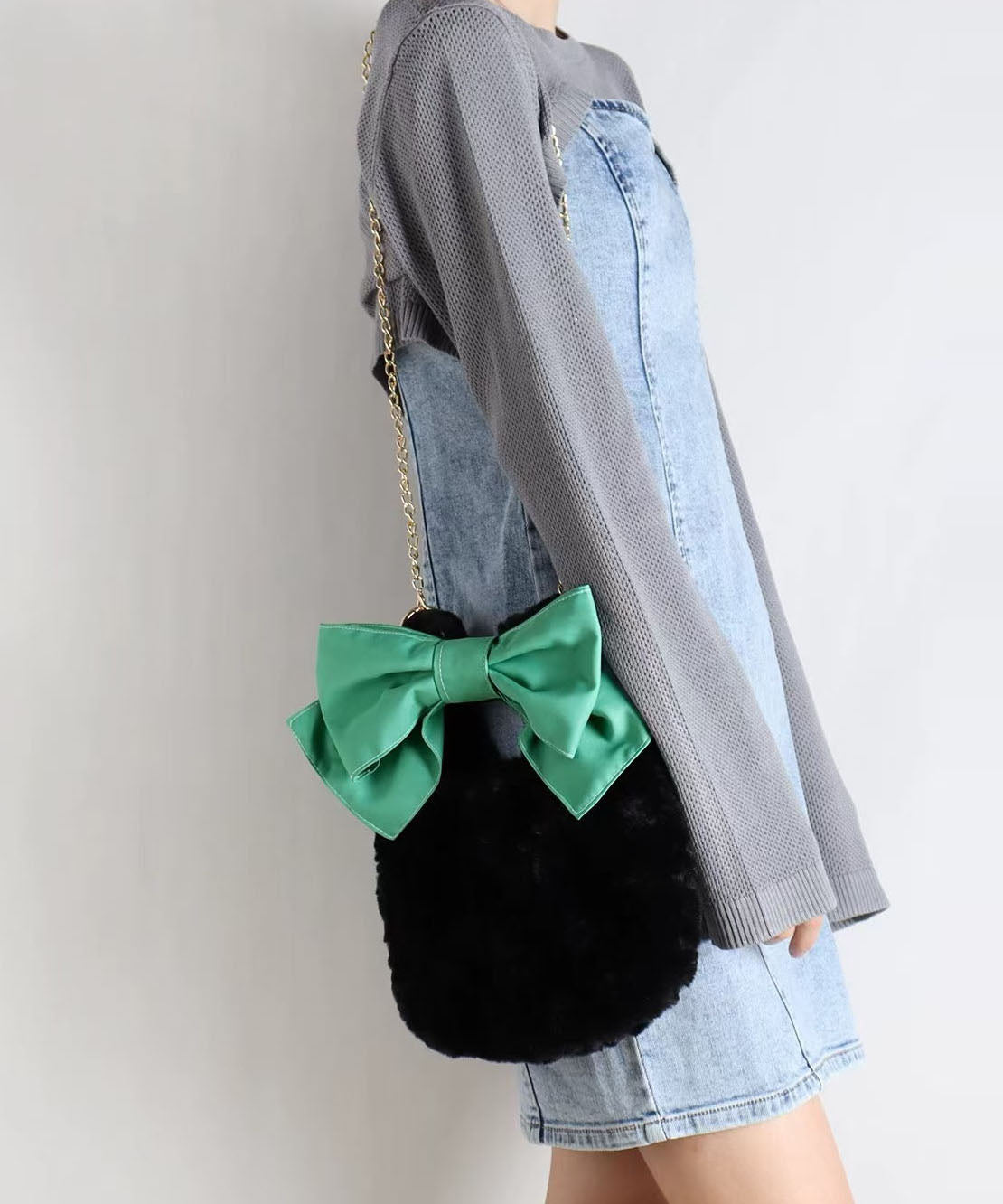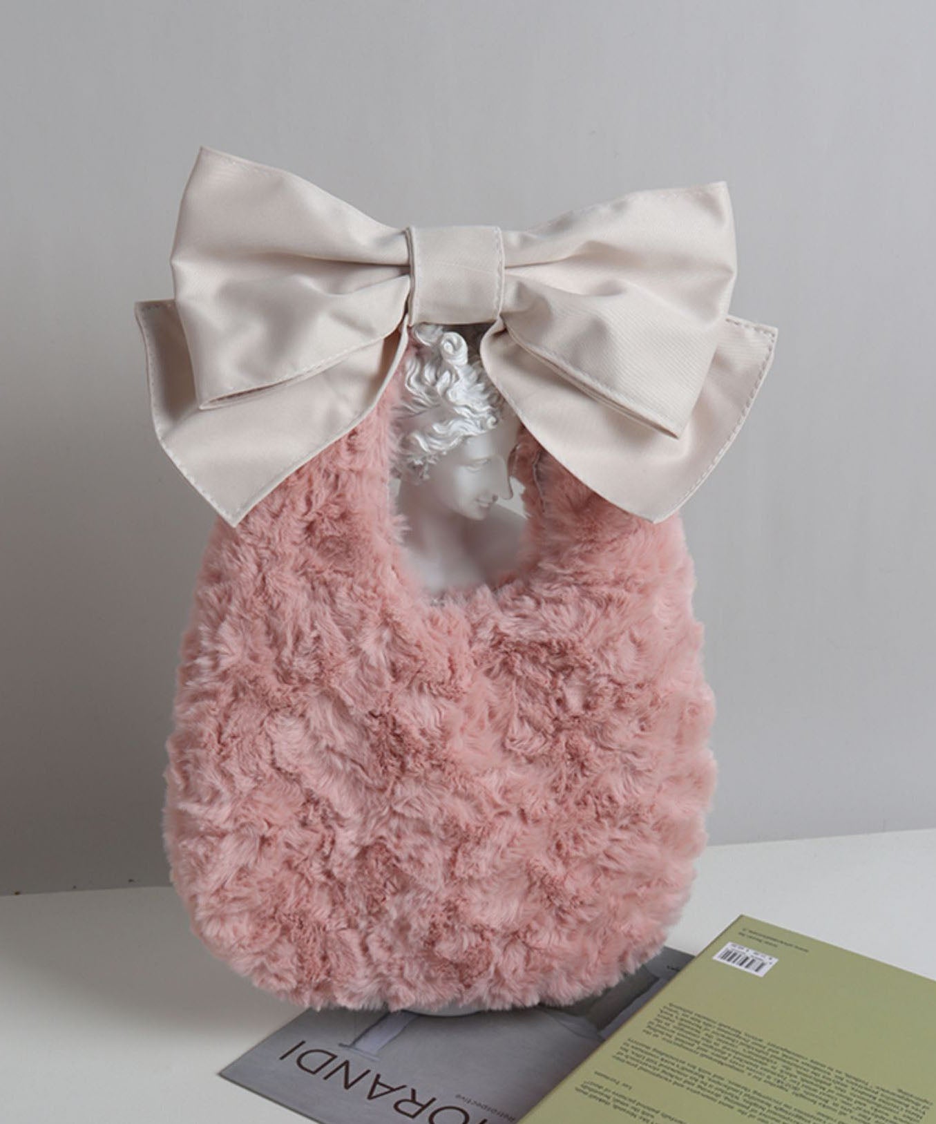 Fashion Pink Bow Faux Rabbit Fur Evening Tote Handbag