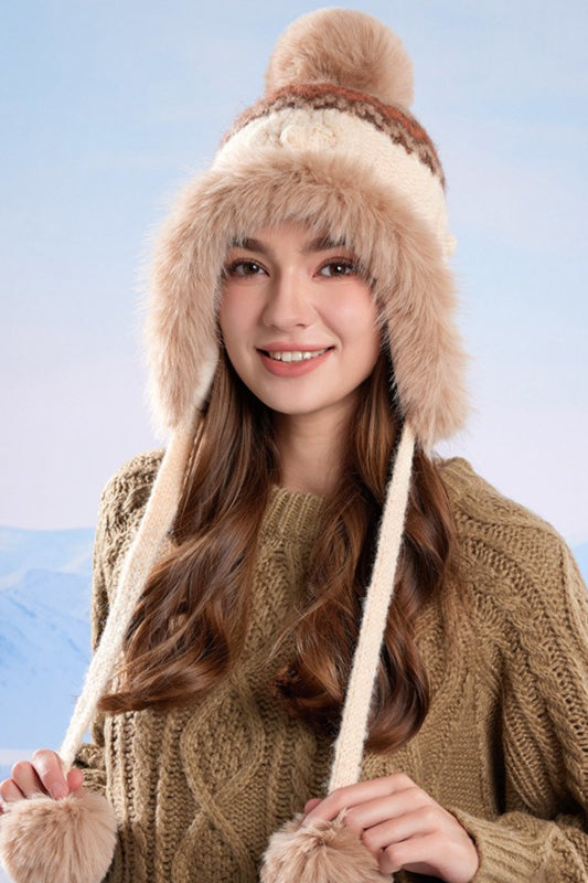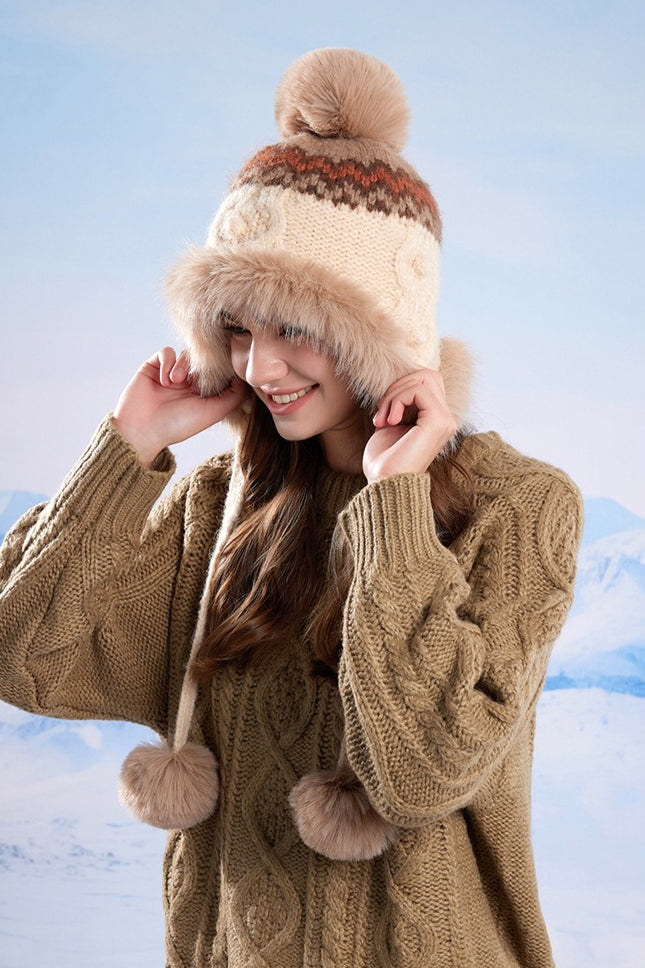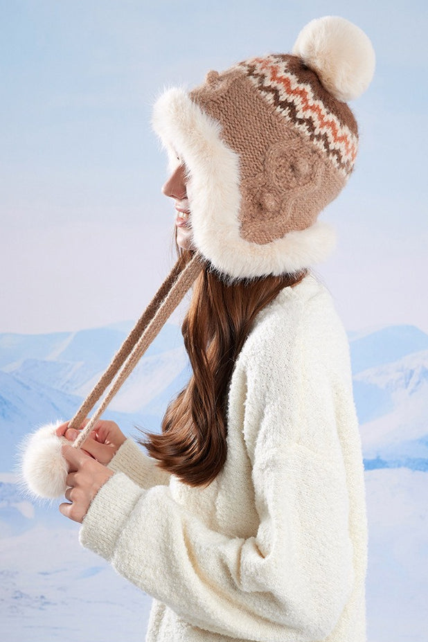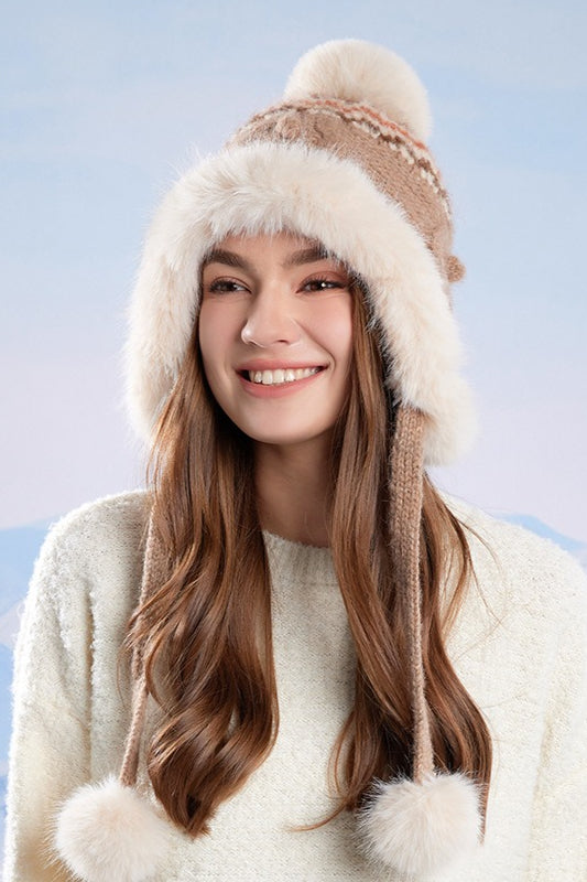 Faux Fur Fair Isle Knit Ear Flap Hat