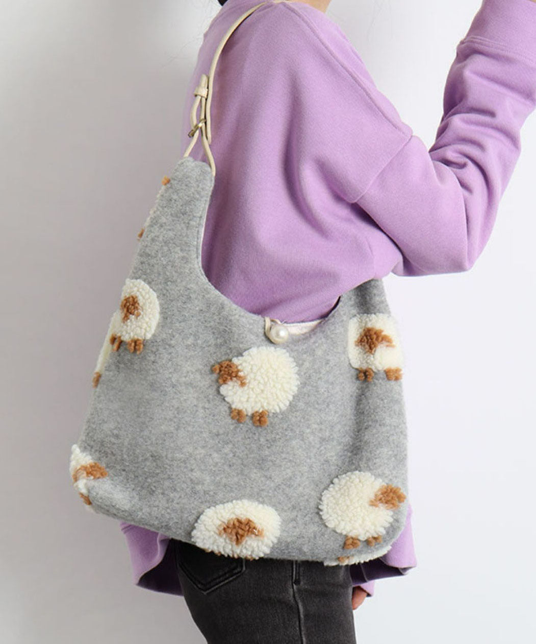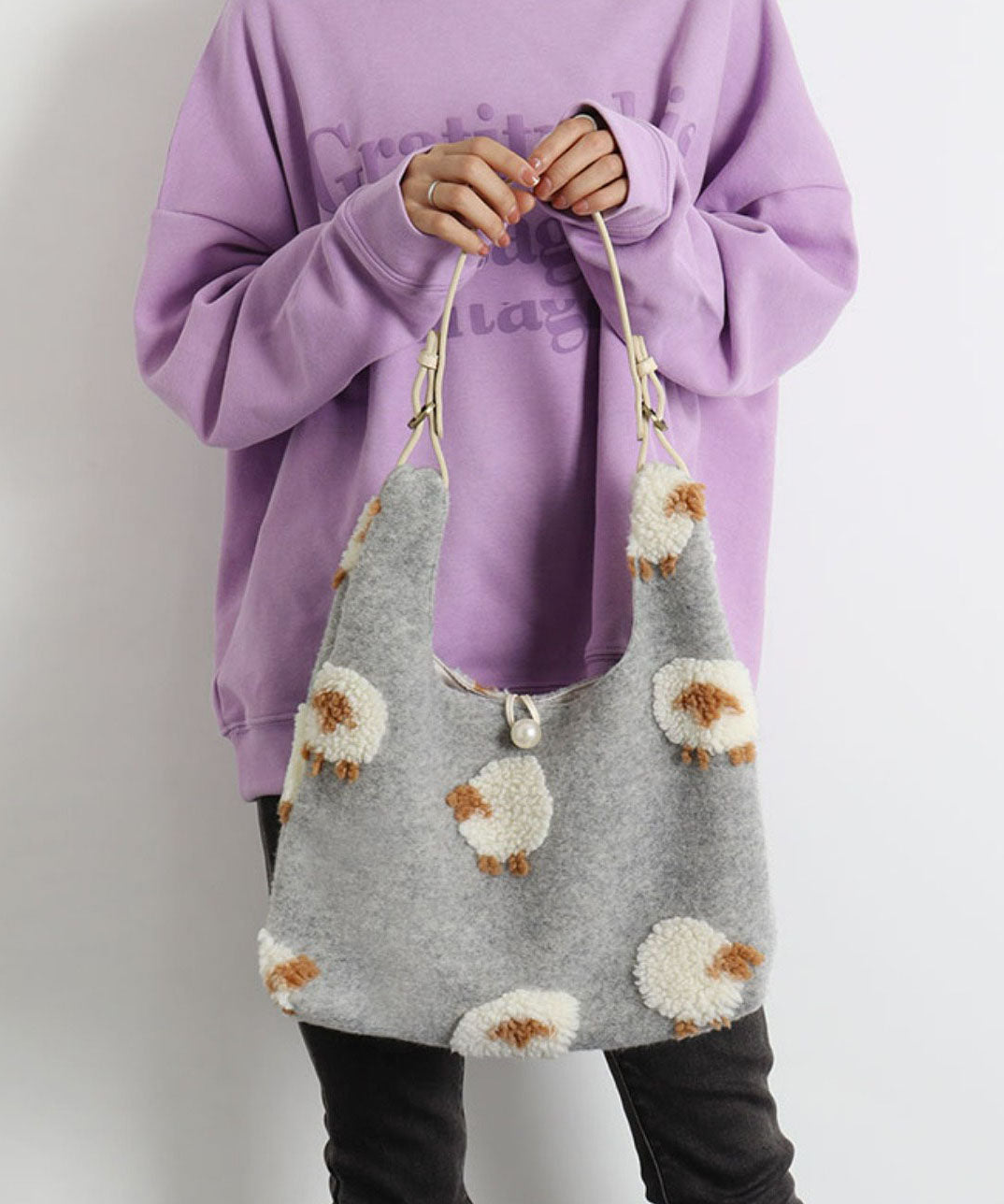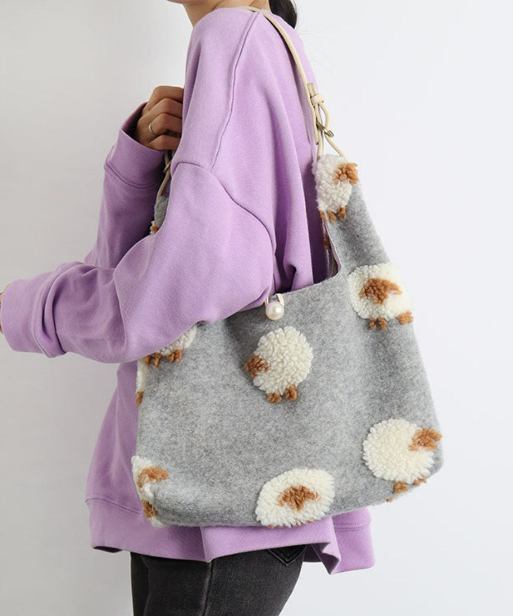 Fine Grey Sheep Jacquard Fuzzy Fur Fluffy Shoulder Bags