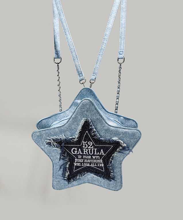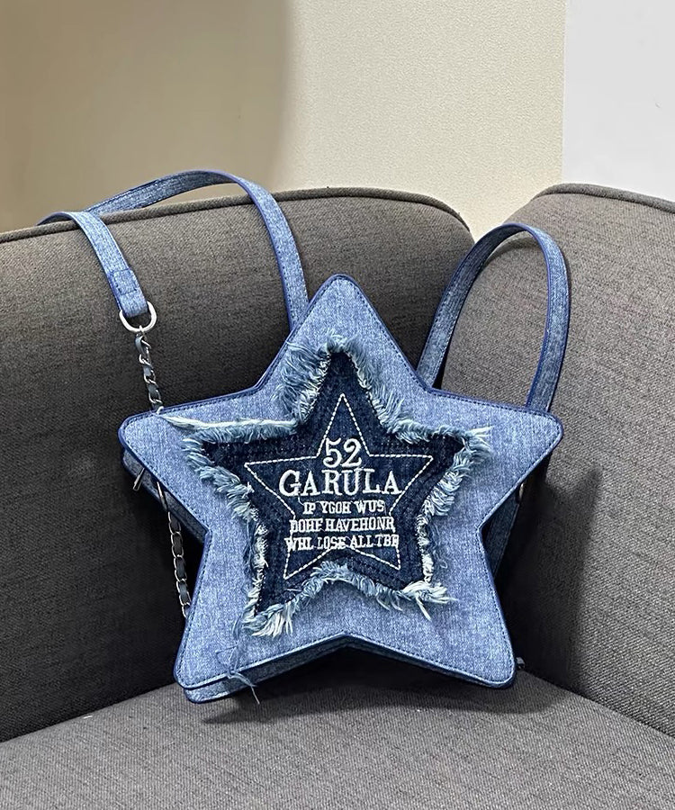 Handmade Denim Blue Tasseled Patchwork Letter Backpack Bag