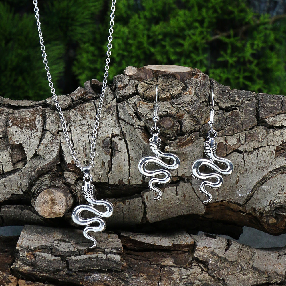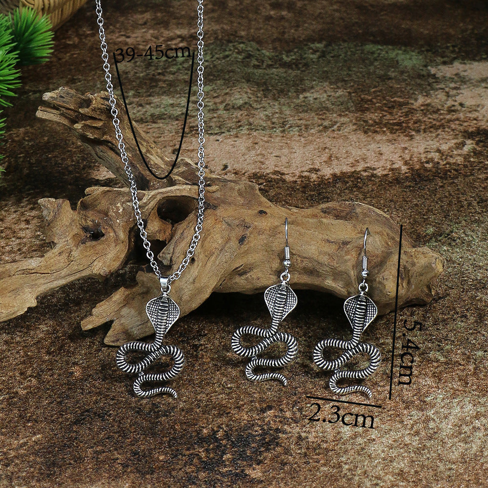 Vintage Court Ethnic Geometric Carved Turquoise Diamond Earrings Necklace Set