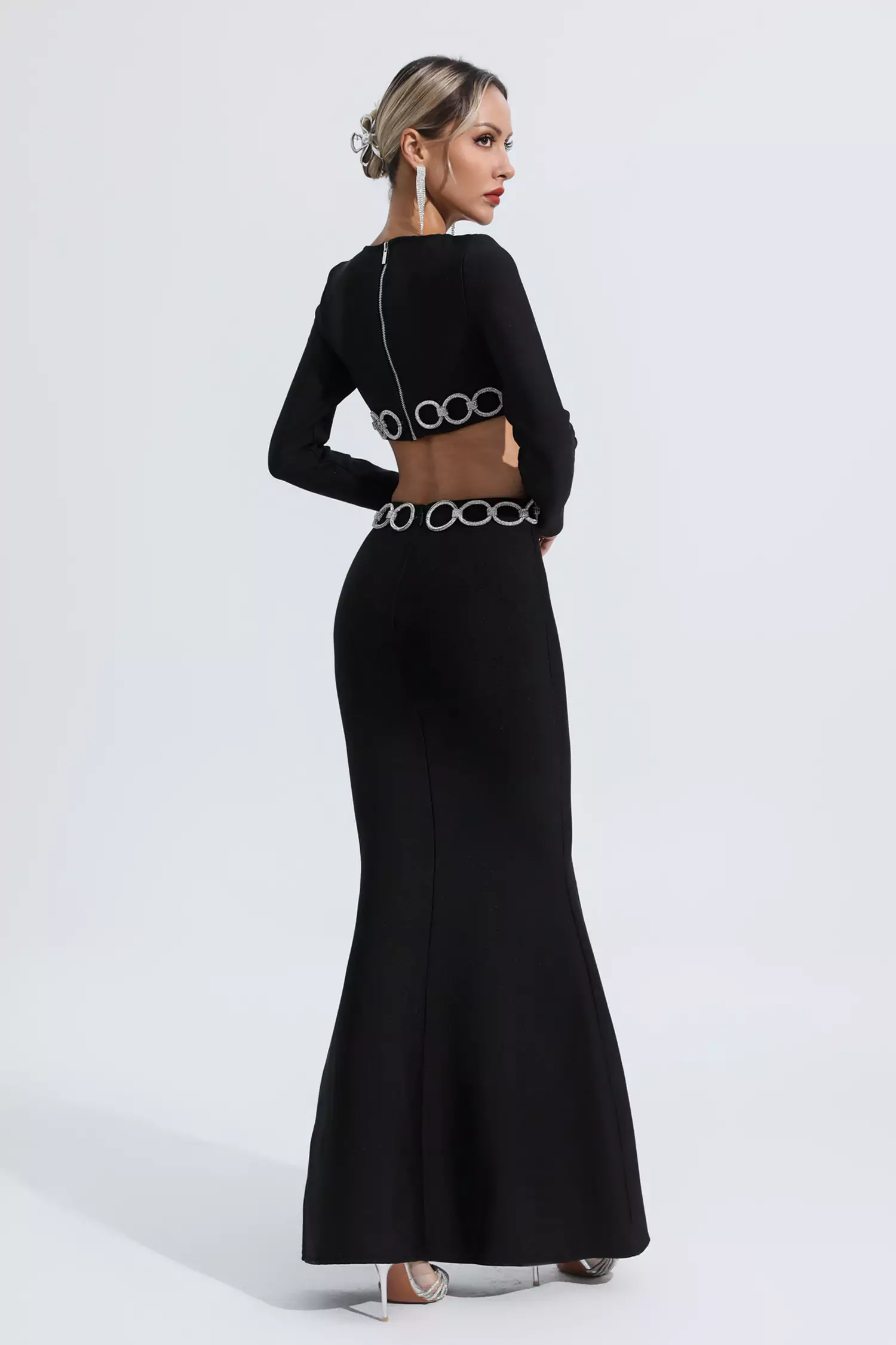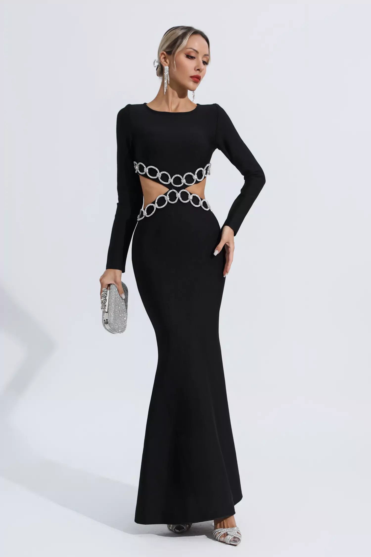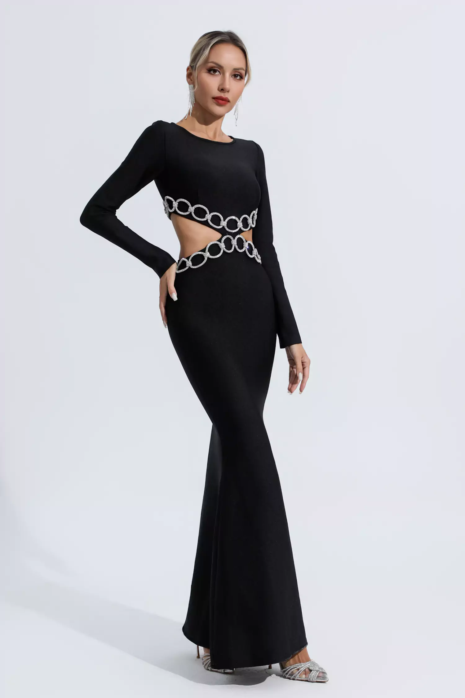 With its waist-baring design and long sleeves, this Janelle Black Cut Out Bandage Dress is perfect for bridesmaids or evening weddings. Crafted with high-quality materials, it hugs your curves in all the right places, giving you a stunning silhouette. Dress to impress with the amazing dress.