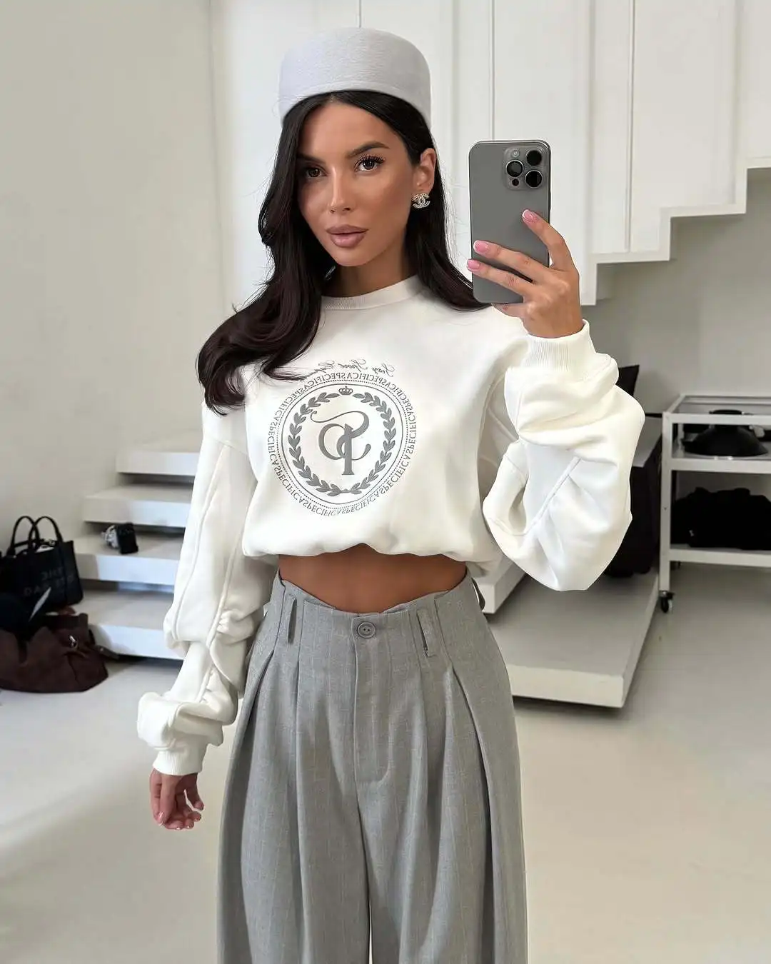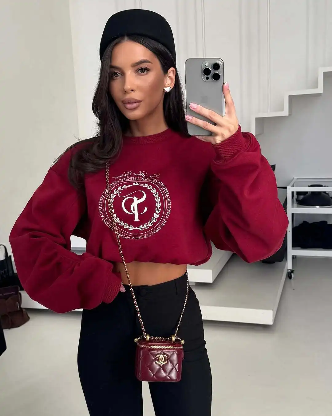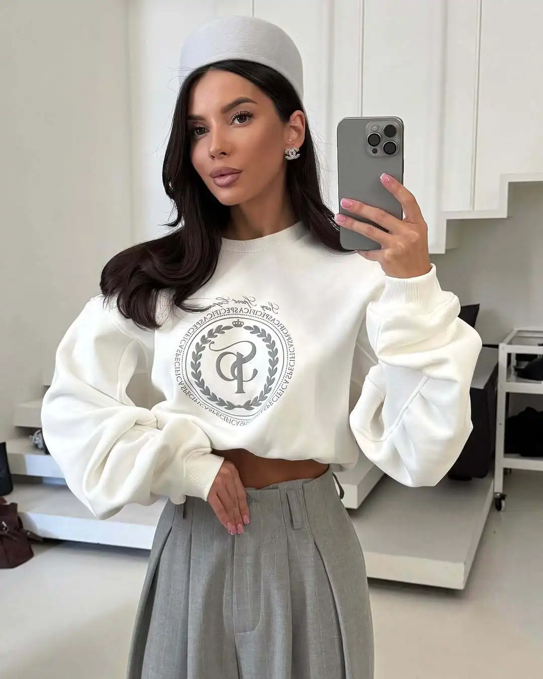 Spring new European and American women's sweatshirt, a laid-back American letter print short round-neck top for ladies