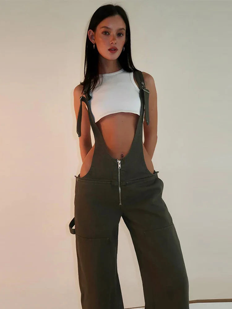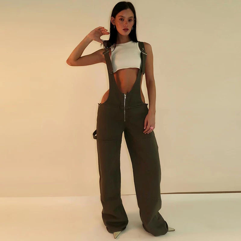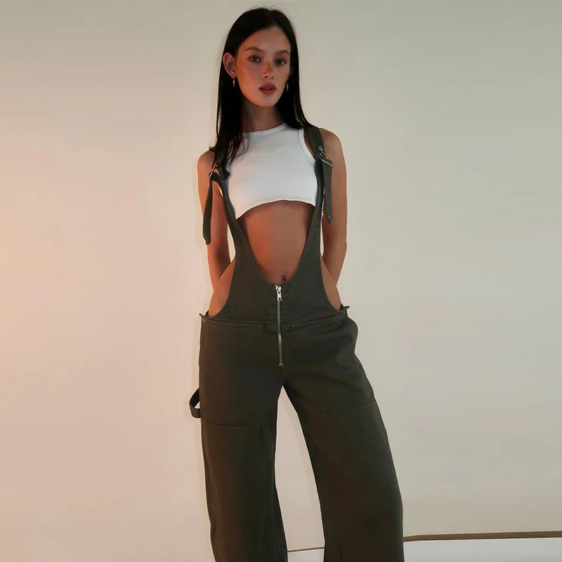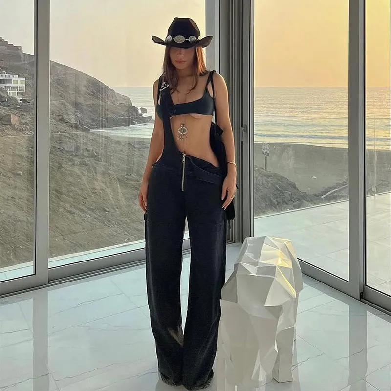 Fashion Denim Jumpsuit for Women Y2K Sleeveless Adjustable Straps Overalls Vintage Female Slant Pockets Jeans Streetwear